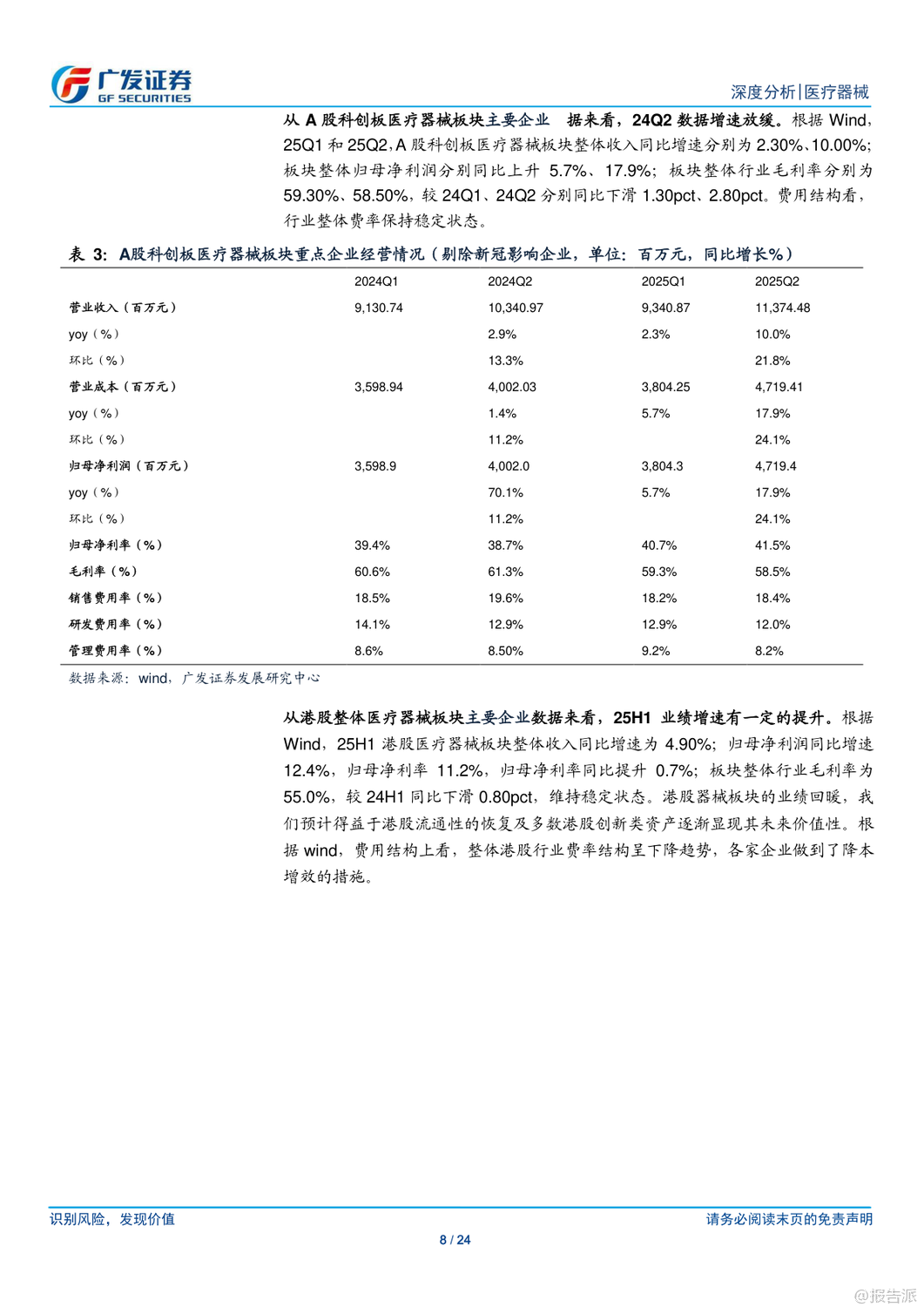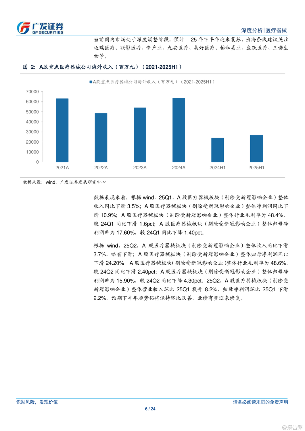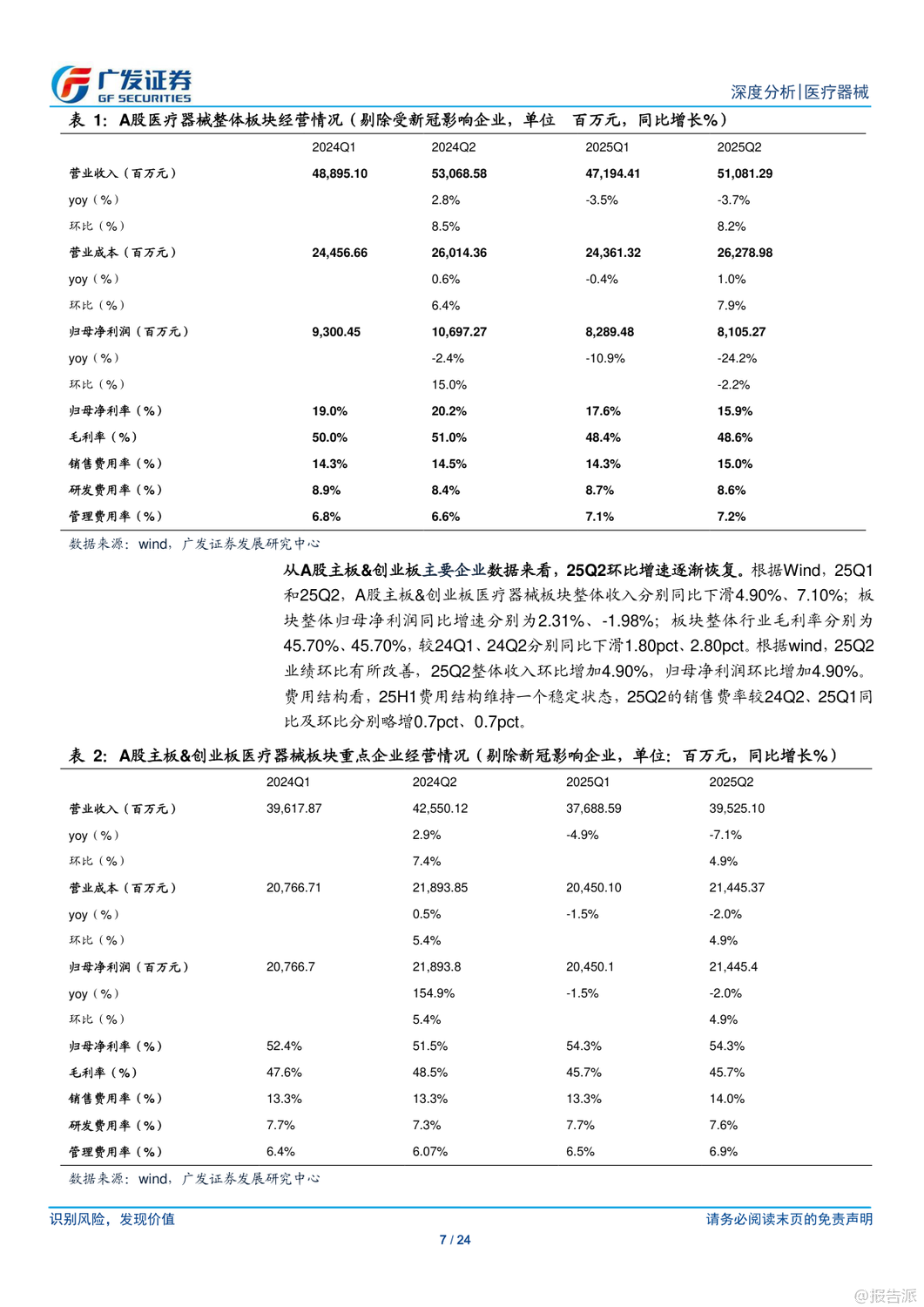 2025年上半年,消費(fèi)醫(yī)療器械行業(yè)整體業(yè)績同比下滑,但Q2環(huán)比改善,海外與創(chuàng)新類資產(chǎn)表現(xiàn)韌性十足。設(shè)備板塊受招標(biāo)放緩影響,營收下滑;耗材及IVD板塊毛利率提升,需求逐步回暖。醫(yī)美與眼科耗材承壓,玻尿酸、再生類產(chǎn)品增長乏力,膠原蛋白成為新亮點。投資建議關(guān)注邁瑞醫(yī)療、聯(lián)影醫(yī)療、愛美客等龍頭公司。行業(yè)面臨匯率波動、政策調(diào)整及產(chǎn)業(yè)鏈轉(zhuǎn)移風(fēng)險。 出品方:廣發(fā)證券 發(fā)布時間:2025年 文檔頁數(shù):24頁 |