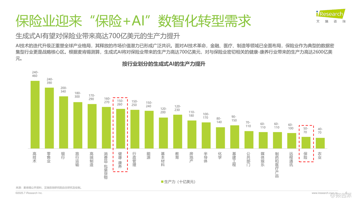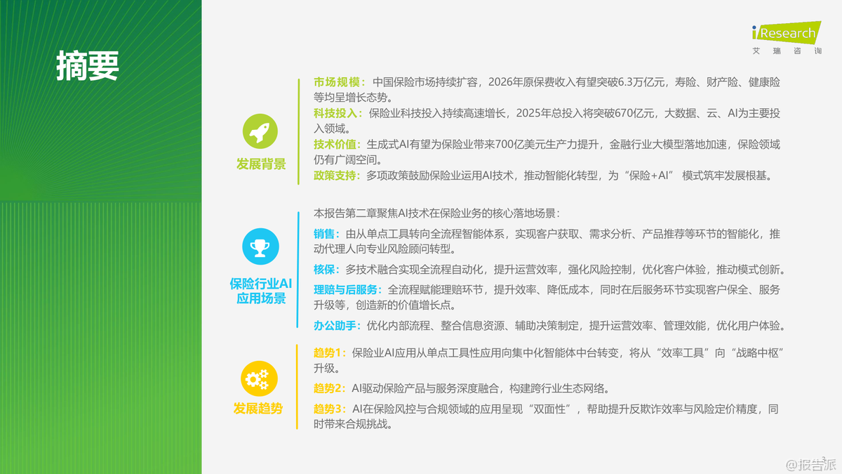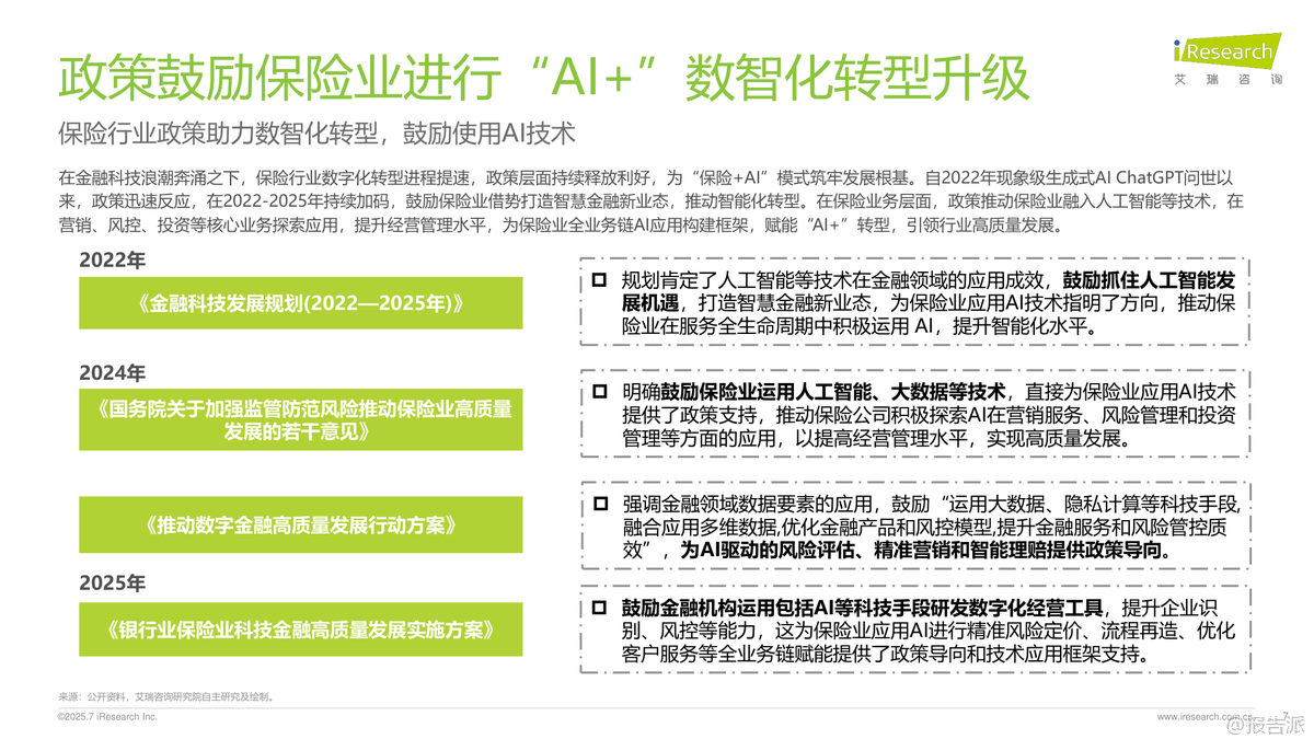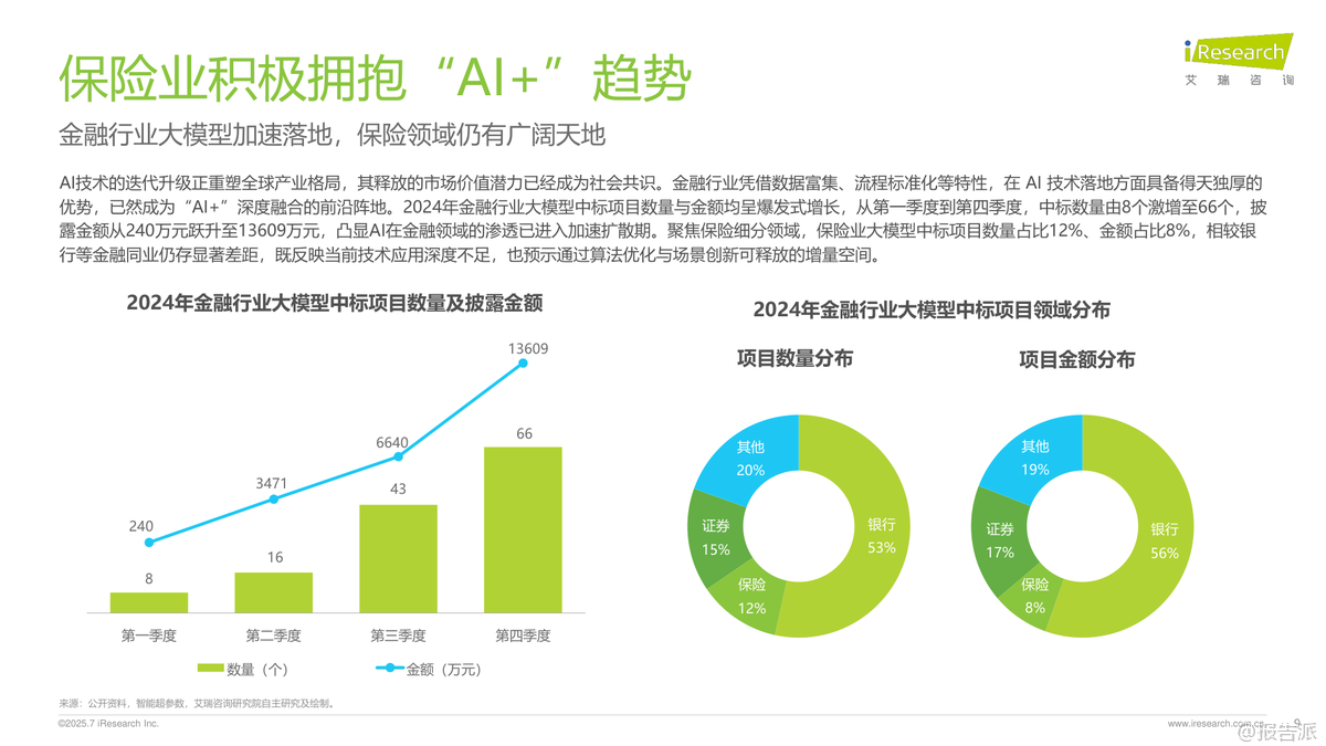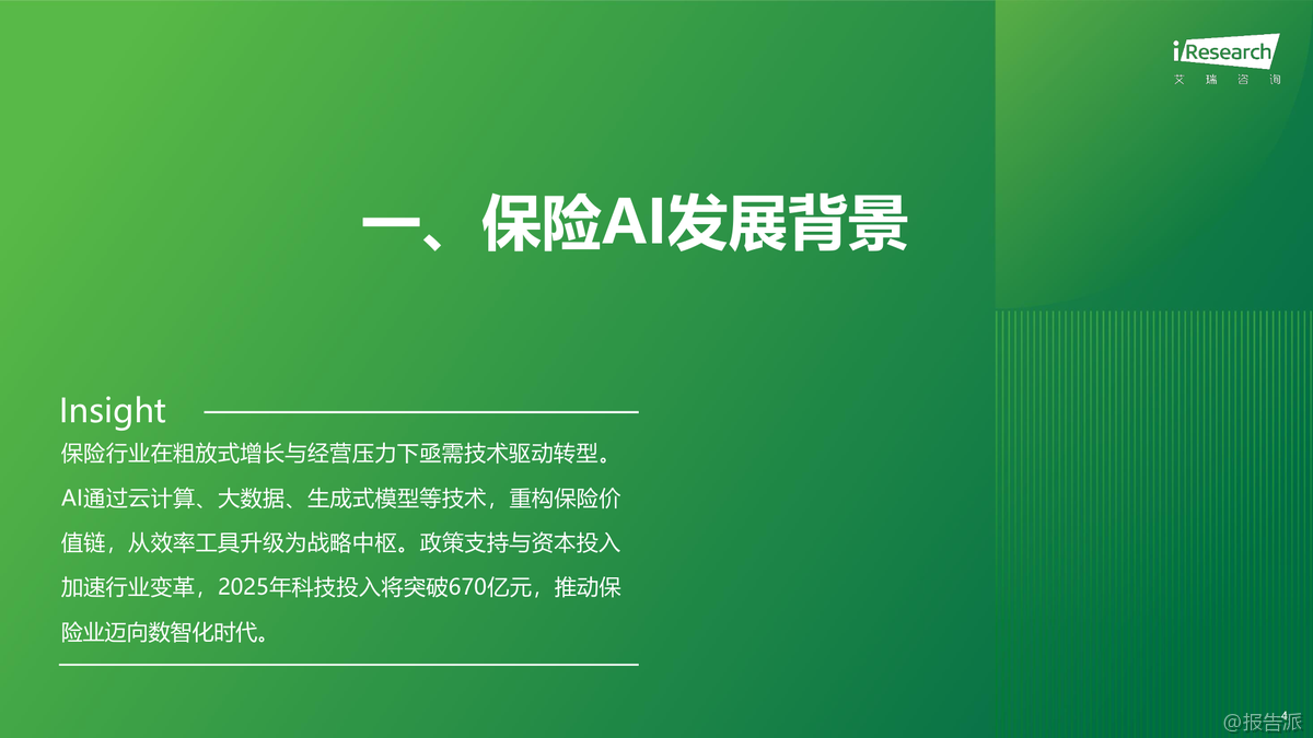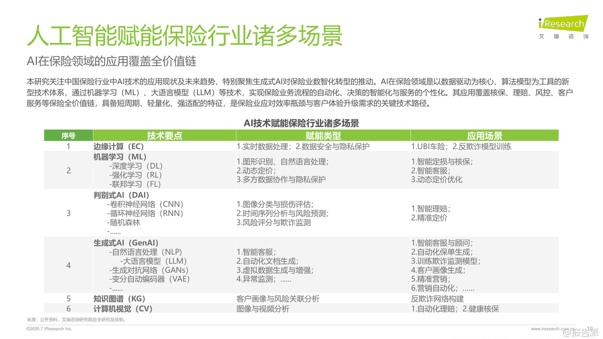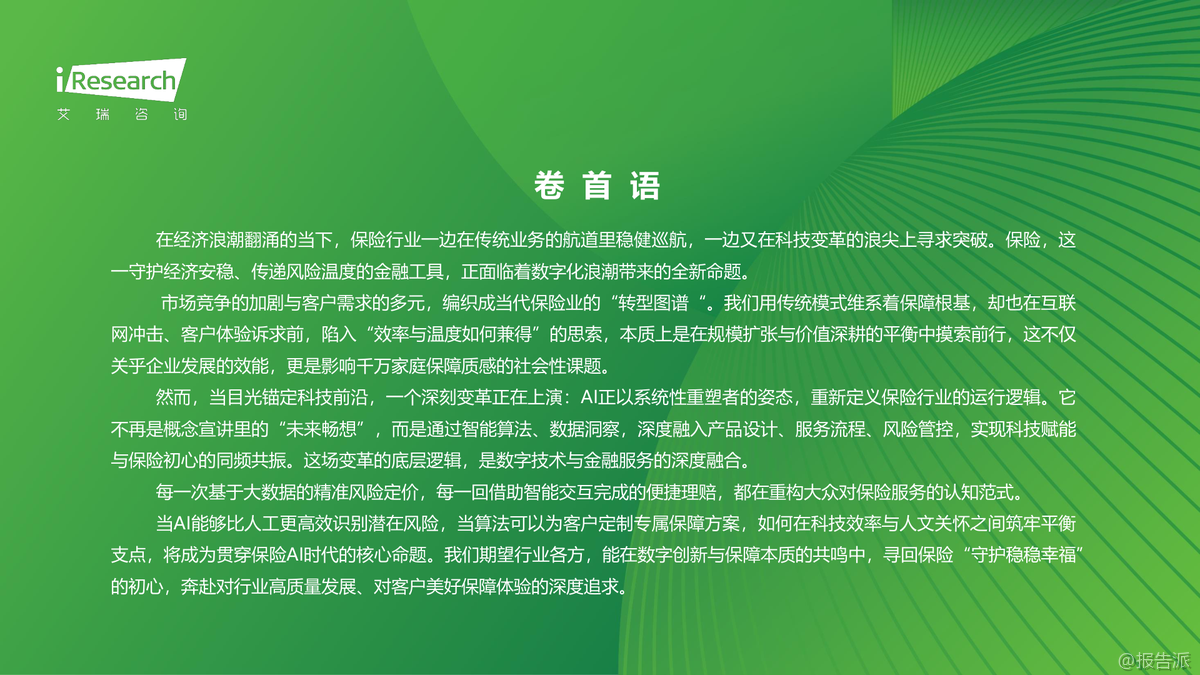 AI正以前所未有的深度重塑保險行業(yè)的底層邏輯,推動其從傳統(tǒng)模式向數(shù)智化轉(zhuǎn)型。 根據(jù)《2025年保險行業(yè)AI應(yīng)用全景洞察報告》,中國保險市場持續(xù)擴(kuò)容,預(yù)計2026年原保費(fèi)收入將突破6.3萬億元,而科技投入將在2025年超過670億元,其中大數(shù)據(jù)、云計算與AI成為主要方向。 生成式AI有望為全球保險業(yè)帶來高達(dá)700億美元的生產(chǎn)力提升,展現(xiàn)出巨大的技術(shù)紅利空間。 當(dāng)前,AI在保險領(lǐng)域的應(yīng)用已從早期的概念驗證走向規(guī)?;涞?,覆蓋產(chǎn)品設(shè)計、銷售、核保、理賠、風(fēng)控及客戶服務(wù)等全價值鏈。 在銷售端,AI通過客戶畫像、意圖識別、智能話術(shù)生成和數(shù)字人營銷等方式,推動代理人從“產(chǎn)品推銷員”向“專業(yè)風(fēng)險顧問”轉(zhuǎn)型,實(shí)現(xiàn)精準(zhǔn)獲客與個性化服務(wù)。 平安人壽、i云保等企業(yè)已構(gòu)建智能銷售支持系統(tǒng),顯著提升展業(yè)效率。 在核保環(huán)節(jié),AI融合機(jī)器學(xué)習(xí)、NLP、OCR與聯(lián)邦學(xué)習(xí)技術(shù),實(shí)現(xiàn)投保資料自動采集、健康信息語義解析、動態(tài)風(fēng)險建模與智能決策。 部分標(biāo)準(zhǔn)化案件可實(shí)現(xiàn)“秒級核?!保蠓嵘\(yùn)營效率與客戶體驗。 理賠方面,AI通過多模態(tài)識別、知識圖譜與區(qū)塊鏈智能合約,實(shí)現(xiàn)從報案、查勘、定損到核賠、支付的全流程自動化。 “無感理賠”“遠(yuǎn)程定損”“自動墊付”等創(chuàng)新服務(wù)正在落地,極大縮短理賠周期并降低欺詐風(fēng)險。 值得關(guān)注的是,AI正推動保險生態(tài)從單一產(chǎn)品銷售向“保險+服務(wù)”融合升級。 商涌科技、眾安信科等科技企業(yè)通過AI健康管理、疾病風(fēng)險預(yù)測、治療路徑優(yōu)化等手段,將保險延伸至醫(yī)療、養(yǎng)老、汽車等跨行業(yè)場景,構(gòu)建“預(yù)防—保障—服務(wù)”一體化生態(tài)。 這種模式不僅增強(qiáng)了客戶黏性,也幫助保險公司實(shí)現(xiàn)從“被動賠付”向“主動風(fēng)控”的戰(zhàn)略躍遷。 然而,AI的廣泛應(yīng)用也帶來挑戰(zhàn)。 算法偏見可能導(dǎo)致承保不公平,數(shù)據(jù)隱私與合規(guī)風(fēng)險日益突出,監(jiān)管滯后于技術(shù)創(chuàng)新。 因此,構(gòu)建AI倫理框架、完善數(shù)據(jù)治理體系、提升模型可解釋性,已成為行業(yè)可持續(xù)發(fā)展的關(guān)鍵議題。 展望未來,保險AI將呈現(xiàn)三大趨勢:一是從單點(diǎn)工具向“智能體中臺”演進(jìn),形成統(tǒng)一的AI能力中樞,實(shí)現(xiàn)跨場景復(fù)用與協(xié)同;二是產(chǎn)品與服務(wù)深度融合,催生“超級智能體”,具備自主決策與持續(xù)進(jìn)化能力;三是風(fēng)控與合規(guī)進(jìn)入智能化階段,AI將在反欺詐、合規(guī)審計、風(fēng)險預(yù)警中發(fā)揮更大作用。 總體來看,AI不僅是效率工具,更將成為保險企業(yè)的戰(zhàn)略中樞,驅(qū)動行業(yè)邁向高質(zhì)量發(fā)展新階段。 出品方:艾瑞 發(fā)布時間:2025年 文檔頁數(shù):31頁 |