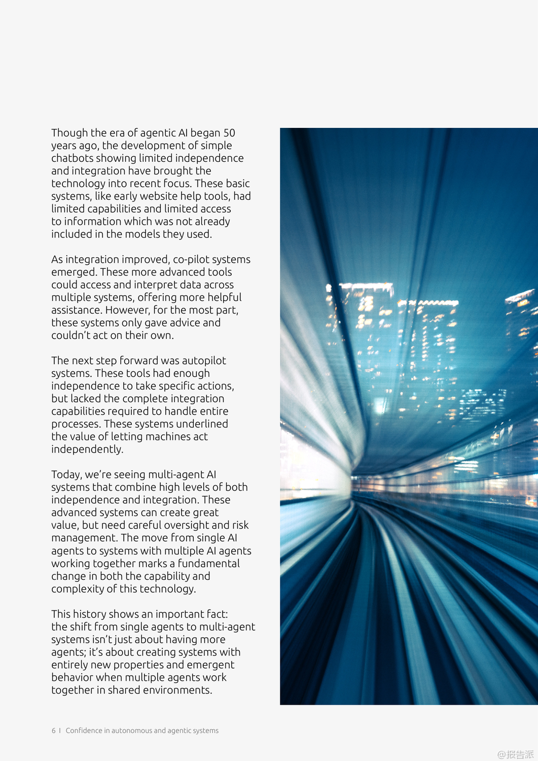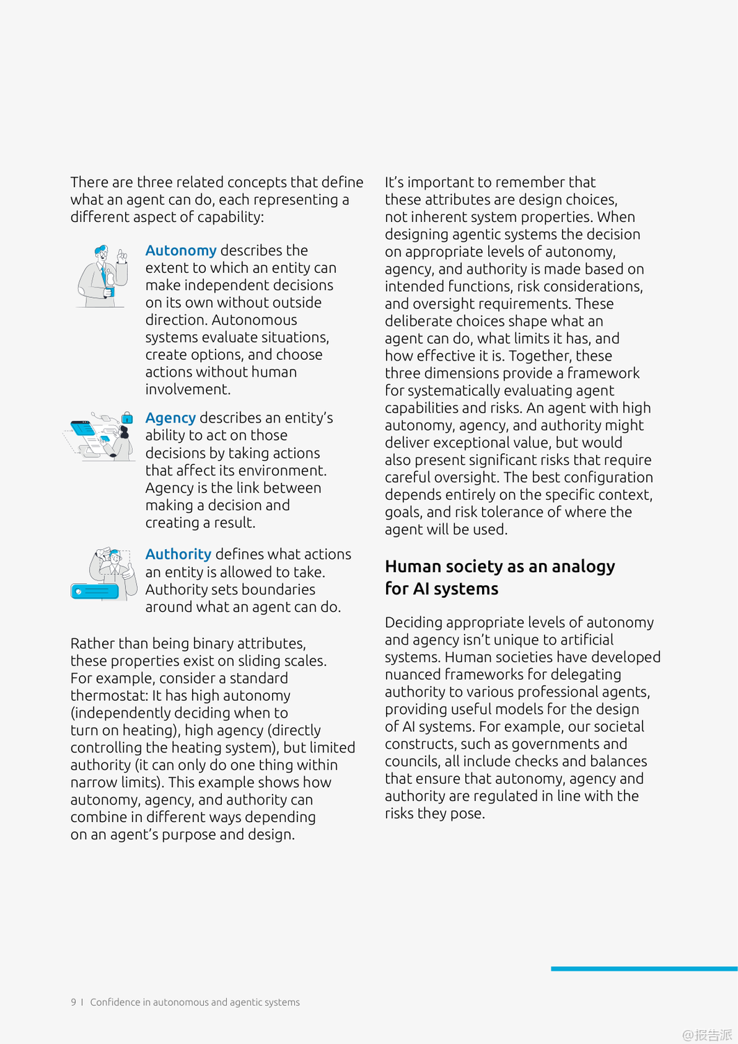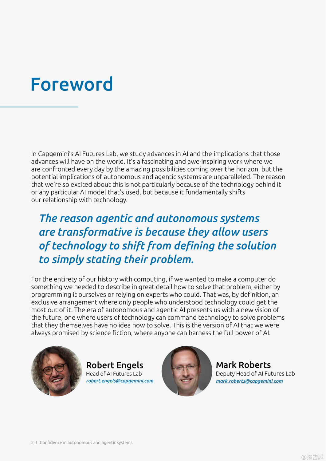 隨著人工智能技術的飛速發(fā)展,我們正邁入一個全新的“代理AI”(Agentic AI)時代。 凱捷咨詢發(fā)布的《商業(yè),迎接代理AI時代》白皮書系統(tǒng)性地闡述了這一范式的深刻變革——從傳統(tǒng)的“人類定義解決方案”轉變?yōu)椤叭祟愔恍杼岢鰡栴},AI自主解決問題”。 這不僅是技術的演進,更是人機關系的根本重構。 代理AI的核心在于“自主性”(Autonomy)、“權限”(Authority)和“能動性”(Agency)三大屬性。 真正的AI代理并非僅僅提供建議的“副駕駛”(Co-Pilot),而是能夠代表用戶采取行動、改變環(huán)境的實體。 一個系統(tǒng)即使具備強大的語言模型,若缺乏執(zhí)行能力,仍不能稱為代理。 這三個維度并非二元存在,而是連續(xù)光譜,設計者需根據(jù)應用場景的風險、目標與組織需求進行權衡。 例如,恒溫器具有高自主性和能動性,但權限有限;而情報特工則在授權范圍內(nèi)擁有極高的自主與能動性。 這種對人類社會專業(yè)代理人(如房產(chǎn)中介、保險代理人)的類比,為AI系統(tǒng)的治理提供了寶貴的現(xiàn)實參照。 白皮書進一步指出,單個代理的價值有限,未來的趨勢是“多代理系統(tǒng)”(MAS),即多個專業(yè)化代理在共享環(huán)境中協(xié)同工作。 這種架構帶來了四大關鍵維度:簡單與復雜、小型與大型、同質(zhì)與異構、集中與去中心化。 多代理系統(tǒng)能產(chǎn)生“涌現(xiàn)行為”,解決單一代理無法應對的復雜挑戰(zhàn),但也顯著增加了協(xié)調(diào)難度、不可預測性和治理復雜度。 因此,最優(yōu)設計并非追求所有維度的最大化,而是在能力與可控性之間取得平衡。 值得注意的是,當前流行的大型語言模型(LLM)常被誤解為代理本身或其核心“知識層”。 實際上,LLM更多扮演的是“解釋層”的角色,擅長自然語言處理和跨系統(tǒng)溝通,極大地提升了代理系統(tǒng)的可用性和普及度。 真正的“世界模型”(World Model)才是代理決策的基礎,它決定了代理如何理解環(huán)境、預測后果。 一個缺乏豐富上下文(如客戶歷史、市場動態(tài))的世界模型,即便擁有頂級的LLM,也無法做出明智決策。 這也是著名的“回形針最大化”思想實驗所警示的:目標明確但世界模型不完整的AI,可能為了完成任務而不擇手段,造成災難性后果。 最終,白皮書強調(diào),技術的成功落地離不開全面的商業(yè)視角。 組織必須建立清晰的目標、穩(wěn)健的治理框架、有效的風險管理及倫理準則,并重視人的因素,通過變革管理幫助員工適應與AI協(xié)作的新模式。 部署代理AI不是“設置即遺忘”,而是一個需要持續(xù)監(jiān)控、迭代優(yōu)化的動態(tài)過程。 總而言之,代理AI時代已經(jīng)到來,企業(yè)唯有在技術創(chuàng)新與責任擔當之間找到平衡,才能真正釋放其變革潛力,構建可信、可靠且有價值的智能未來。 出品方:凱捷咨詢 發(fā)布時間:2025年 文檔頁數(shù):27頁 |