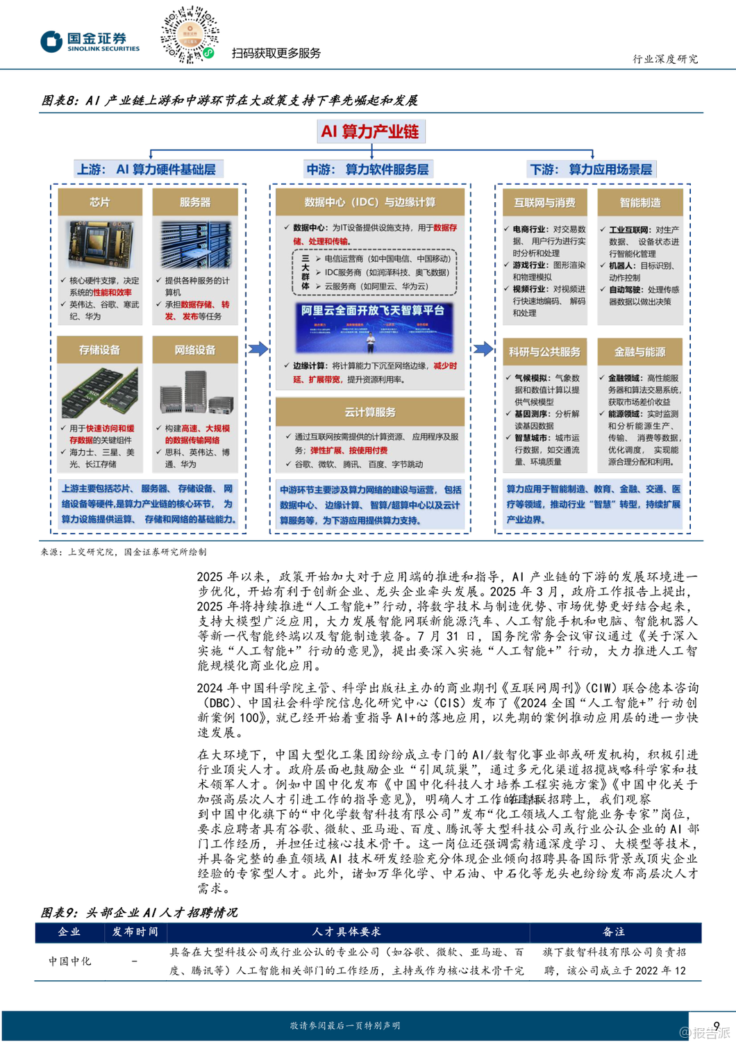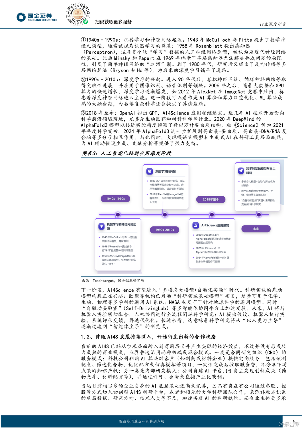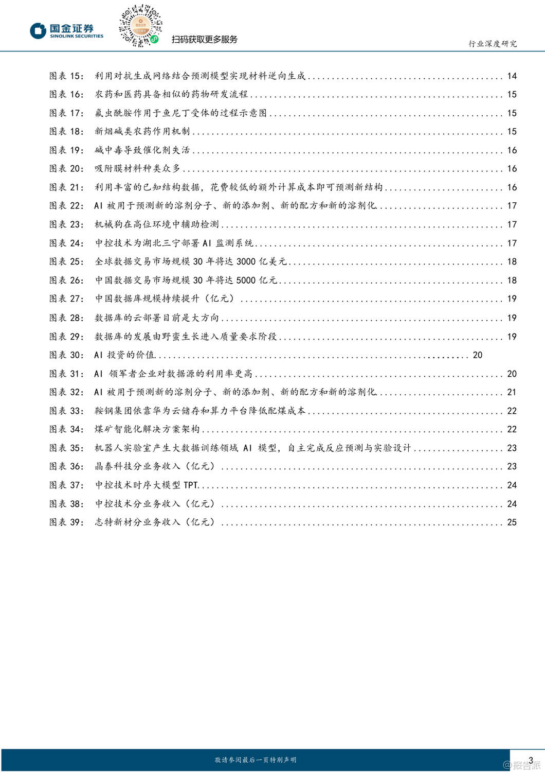 AI for Science(AI4S)正在重塑基礎(chǔ)化工行業(yè)的研發(fā)范式,從效率工具升級(jí)為智能輔助,推動(dòng)科學(xué)研究邁入“智能體主導(dǎo)”的新時(shí)代。 這份由國(guó)金證券發(fā)布的《2025年08月15日更新-基礎(chǔ)化工行業(yè)研究:AI系列深度-二-——AI for Science應(yīng)用端落地快速開(kāi)啟》報(bào)告指出,AI4S已從學(xué)術(shù)探索走向商業(yè)應(yīng)用,盡管尚未形成成熟商業(yè)模式,但正通過(guò)合作研發(fā)、自主開(kāi)發(fā)及混合模式加速滲透。 當(dāng)前,AI4S正處于“多模態(tài)大模型+自動(dòng)化實(shí)驗(yàn)”時(shí)代,Self-Driving Lab(自驅(qū)動(dòng)實(shí)驗(yàn)室)等多智能體協(xié)同平臺(tái)快速發(fā)展,AI與機(jī)器人緊密協(xié)作,實(shí)現(xiàn)假設(shè)提出、實(shí)驗(yàn)執(zhí)行、反饋評(píng)估的全流程閉環(huán)科研。 大型企業(yè)或國(guó)家級(jí)實(shí)驗(yàn)室傾向于建立自有AI平臺(tái)并對(duì)外開(kāi)放,構(gòu)建創(chuàng)新網(wǎng)絡(luò);中小企業(yè)則更依賴外部商業(yè)化平臺(tái),采取合作模式降低成本與風(fēng)險(xiǎn)。 在化工領(lǐng)域,AI的應(yīng)用正從解決行業(yè)痛點(diǎn)切入,六大創(chuàng)新方向有望率先突破:一是生物發(fā)酵中的菌株篩選與流程優(yōu)化,利用AI提升培養(yǎng)基設(shè)計(jì)效率,顯著提高產(chǎn)量;二是新型材料的逆向設(shè)計(jì)與性能預(yù)測(cè),通過(guò)生成式模型在高維空間中快速篩選最優(yōu)材料組合;三是農(nóng)藥、醫(yī)藥等藥劑產(chǎn)品的分子發(fā)現(xiàn)與結(jié)構(gòu)優(yōu)化,借鑒醫(yī)藥AI經(jīng)驗(yàn)加速創(chuàng)新藥開(kāi)發(fā);四是催化劑、添加劑的性能升級(jí)與產(chǎn)物分離技術(shù)優(yōu)化,降低研發(fā)周期與成本;五是基于微觀結(jié)構(gòu)的數(shù)據(jù)遷移學(xué)習(xí),實(shí)現(xiàn)跨材料體系的智能設(shè)計(jì);六是配方智能化,如鋰電池電解液的AI輔助設(shè)計(jì),提升性能與穩(wěn)定性。 此外,AI在生產(chǎn)優(yōu)化方面也有三大賦能路徑:替代重復(fù)性人工操作、實(shí)現(xiàn)關(guān)鍵環(huán)節(jié)的智能監(jiān)測(cè)、優(yōu)化生產(chǎn)過(guò)程與資源調(diào)配,進(jìn)而帶動(dòng)設(shè)備升級(jí)投資。 值得注意的是,高質(zhì)量數(shù)據(jù)已成為拉開(kāi)企業(yè)AI競(jìng)爭(zhēng)力差距的核心因素。 由于化工數(shù)據(jù)高度私有化且積累門檻高,歷史管理規(guī)范的頭部企業(yè)、具備外部合作能力的細(xì)分龍頭以及融合“機(jī)器人+智算平臺(tái)”的生產(chǎn)企業(yè)更具長(zhǎng)期優(yōu)勢(shì)。 報(bào)告建議關(guān)注AI在化工全鏈條的滲透機(jī)會(huì):設(shè)備端聚焦“AI+機(jī)器人”高危巡檢,研發(fā)端布局“AI+自動(dòng)化實(shí)驗(yàn)”驅(qū)動(dòng)分子發(fā)現(xiàn),產(chǎn)品端重視AI輔助配方升級(jí)與新材料迭代。 重點(diǎn)推薦晶泰科技、中控技術(shù)、志特新材等企業(yè)。 同時(shí)提醒關(guān)注技術(shù)迭代、商業(yè)化驗(yàn)證、數(shù)據(jù)合規(guī)、人才爭(zhēng)奪及估值回調(diào)等五大風(fēng)險(xiǎn)。 總體來(lái)看,AI4S不僅是技術(shù)變革,更是未來(lái)化工行業(yè)競(jìng)爭(zhēng)格局重構(gòu)的關(guān)鍵驅(qū)動(dòng)力。 出品方:國(guó)金證券 發(fā)布時(shí)間:2025年 文檔頁(yè)數(shù):26頁(yè) |