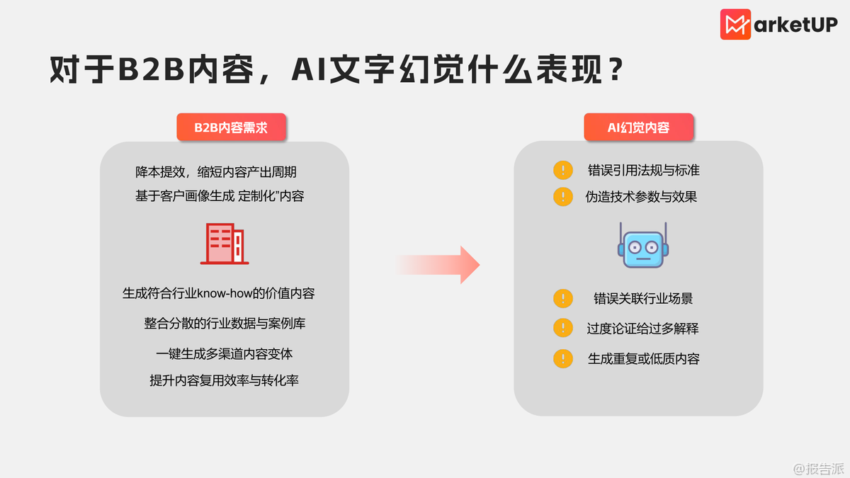 在人工智能加速滲透內(nèi)容生產(chǎn)的當(dāng)下,B2B營銷領(lǐng)域正面臨一場關(guān)于效率與可信度的雙重挑戰(zhàn)。 由MarketUP發(fā)布的《2025年B2B內(nèi)容營銷AI使用手冊——防‘AI幻覺’篇》,聚焦于AI生成內(nèi)容在專業(yè)場景中的真實性風(fēng)險,系統(tǒng)梳理了AI幻覺的成因、表現(xiàn)及切實可行的解決方案,為B2B企業(yè)構(gòu)建可信、高效的內(nèi)容生產(chǎn)體系提供了方法論指導(dǎo)。 所謂AI幻覺,是指大模型在生成過程中出現(xiàn)與事實不符、邏輯斷裂或偏離上下文的情況。 其根源并非惡意造假,而是模型基于統(tǒng)計概率做出的“合理猜測”。 該手冊指出,AI幻覺主要源于四大因素:訓(xùn)練數(shù)據(jù)存在偏差、模型難以泛化至未見場景、知識固化導(dǎo)致信息滯后,以及對用戶意圖的理解偏差。 尤其在B2B場景中,這些幻覺可能表現(xiàn)為偽造技術(shù)參數(shù)、錯誤引用行業(yè)標(biāo)準(zhǔn)、誤關(guān)聯(lián)應(yīng)用場景或生成低質(zhì)重復(fù)內(nèi)容,一旦用于客戶溝通或技術(shù)說明,極易引發(fā)信任危機(jī)。 針對這些問題,手冊提出了多層次的應(yīng)對策略。 首先在提示詞設(shè)計層面,強(qiáng)調(diào)避免模糊提問、人格扮演或多角色要求,防止AI自由發(fā)揮;推薦使用預(yù)設(shè)限定詞,明確時間、行業(yè)、場景和風(fēng)格,通過交叉驗證和直接追問(如‘直接給出5個答案’)提升輸出準(zhǔn)確性。 其次,手冊重點推薦構(gòu)建企業(yè)專屬AI知識庫,作為對抗幻覺的核心防線。 其中,基礎(chǔ)型知識庫如納米知識庫和IMA知識庫,支持圖文、鏈接導(dǎo)入,可結(jié)合聯(lián)網(wǎng)搜索靈活使用;而智能體平臺如COZE扣子,則允許配置人設(shè)、流程與插件,實現(xiàn)更復(fù)雜的自動化內(nèi)容生成。 尤為值得關(guān)注的是,手冊提出將AI知識庫與獲客戰(zhàn)略結(jié)合的理念。 通過百度智能體等平臺,企業(yè)可圍繞核心業(yè)務(wù)關(guān)鍵詞建立智能體矩陣,搶占搜索引擎排名,實現(xiàn)內(nèi)容分發(fā)與線索孵化的雙重目標(biāo)。 更進(jìn)一步,MarketUP建議將知識庫嵌入小程序,使?jié)撛诳蛻粼诟哳l互動中自然調(diào)用企業(yè)內(nèi)容,形成“內(nèi)容即服務(wù)”的客戶培育模式。 在視覺內(nèi)容方面,手冊同樣揭示了“AI圖片幻覺”的風(fēng)險,如連接器針腳數(shù)量錯誤、材質(zhì)識別失真等。 為此,提出“底圖先行”原則——優(yōu)先收集或制作清晰、無遮擋的產(chǎn)品矢量圖作為生成基準(zhǔn),并通過精細(xì)化提示詞控制材質(zhì)、尺寸、環(huán)境、視角與細(xì)節(jié)精度,確保工業(yè)級圖像輸出的準(zhǔn)確性。 最終,手冊倡導(dǎo)建立“AI+真人”的協(xié)同內(nèi)容體系:AI負(fù)責(zé)提升內(nèi)容復(fù)用率、生成效率與SEO覆蓋,釋放人力投入于客戶信任建設(shè)與真實反饋收集,進(jìn)而反哺AI優(yōu)化,形成可持續(xù)的內(nèi)容進(jìn)化閉環(huán)。 這不僅是技術(shù)工具的使用指南,更是面向2025年B2B營銷智能化轉(zhuǎn)型的戰(zhàn)略藍(lán)圖。 出品方:MarketUP 發(fā)布時間:2025年 |
