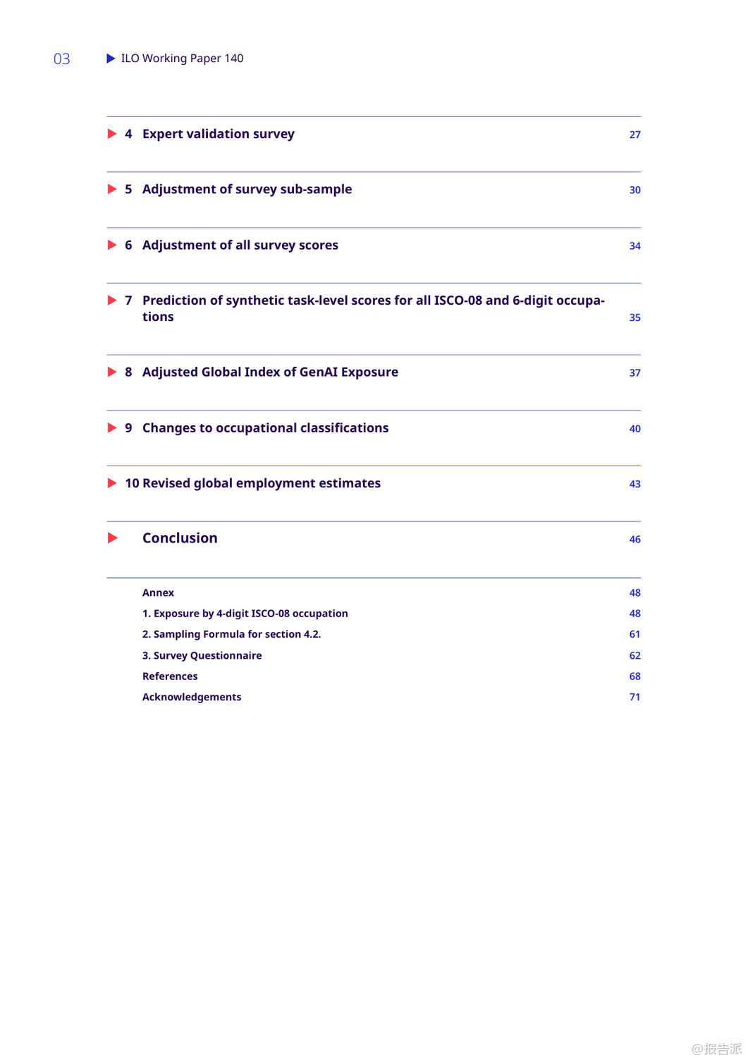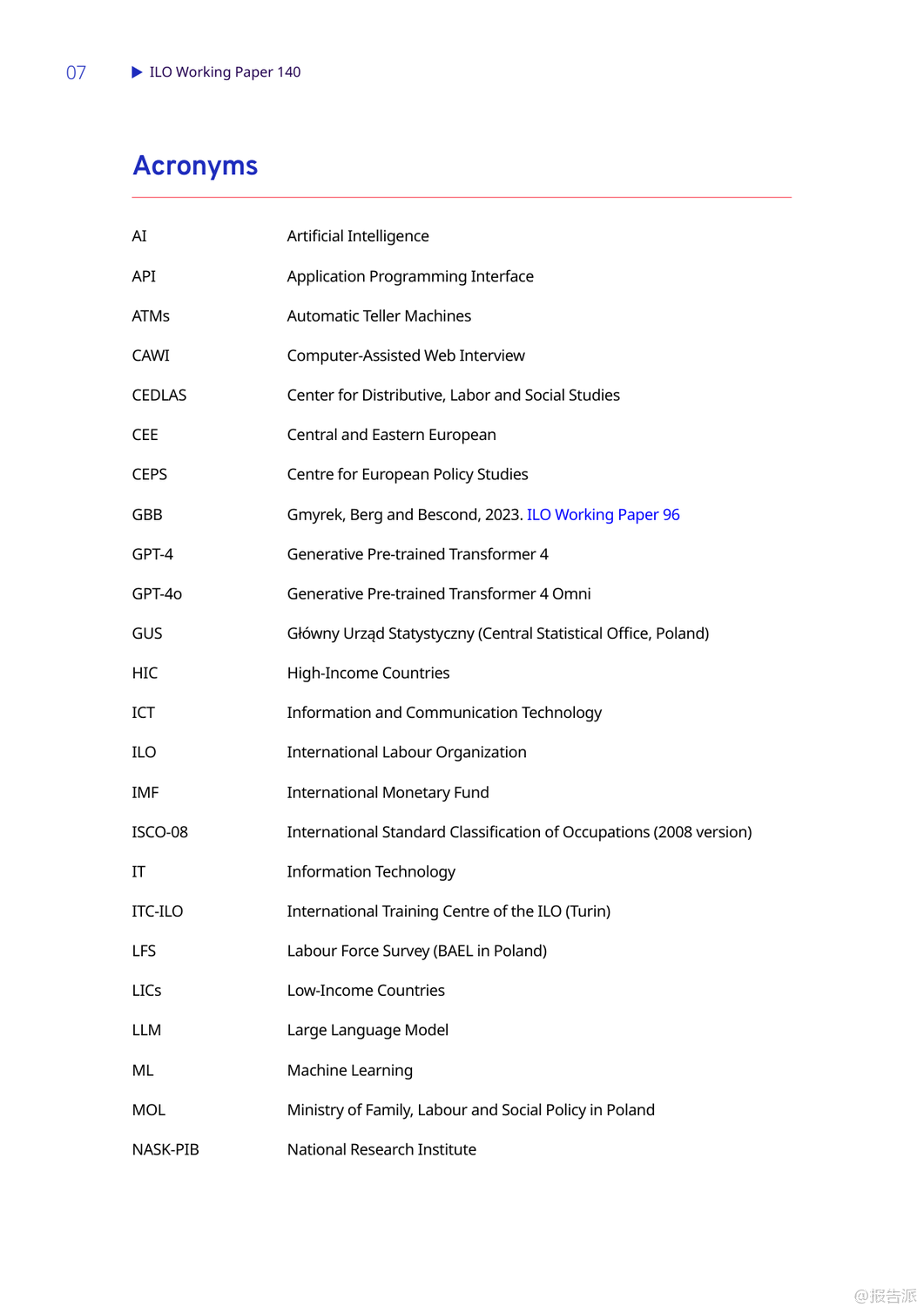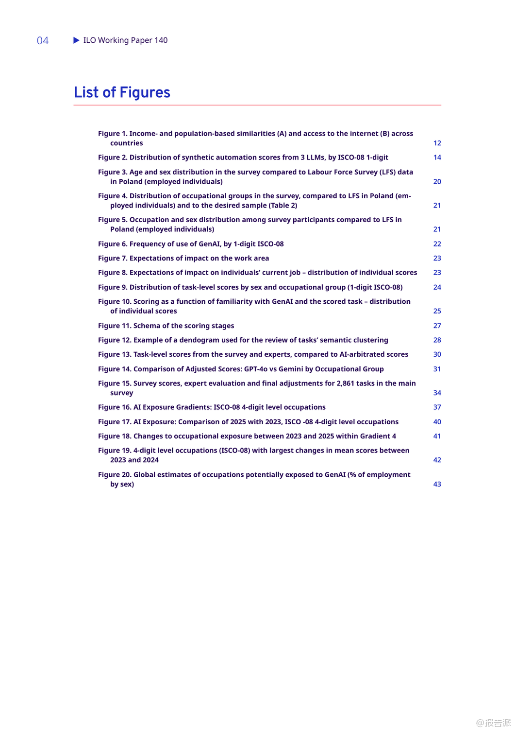 國際勞工組織(ILO)最新發(fā)布的《生成式人工智能與工作:一個精確的全球職業(yè)暴露指數(shù)》報告,基于對近3萬項工作任務的深入分析,揭示了生成式AI對全球勞動力市場的深遠影響。 該研究結合波蘭6位數(shù)職業(yè)分類系統(tǒng)及1640名在職人員的調(diào)查數(shù)據(jù),構建了一個更為精細的職業(yè)暴露評估體系,涵蓋52558條任務自動化潛力評分,并通過專家驗證和AI模型預測,形成全球首個高精度生成式AI職業(yè)暴露指數(shù)。 報告將職業(yè)暴露劃分為四個梯度:第四梯度為最高暴露級別,任務自動化一致性高,主要集中于文職類崗位,如數(shù)據(jù)錄入員、會計文員、行政秘書等;第三梯度為顯著暴露但任務差異大,包括金融分析師、網(wǎng)頁開發(fā)者、翻譯等專業(yè)崗位;第二和第一梯度則分別為中等和低暴露水平,覆蓋更多需要人際互動或復雜判斷的職業(yè)。 值得注意的是,盡管部分技術崗位如軟件開發(fā)、多媒體設計的暴露程度有所上升,反映出生成式AI在圖像、音頻、視頻等多模態(tài)能力上的突破,但絕大多數(shù)職業(yè)仍包含需人類參與的核心任務,因此“崗位重塑”而非“全面替代”是更可能的發(fā)展路徑。 全球約四分之一的勞動者處于某種形式的生成式AI暴露之下,其中高收入國家比例高達34%,而低收入國家僅為11%。 性別差異尤為突出:女性就業(yè)在高暴露梯度中的占比遠超男性,全球范圍內(nèi),4.7%的女性崗位屬于最高暴露等級,而男性僅為2.4%;在高收入國家,這一差距擴大至9.6%對3.5%。 這主要源于女性在文職、客服、財務等高度數(shù)字化且流程化職業(yè)中的集中分布。 報告強調(diào),當前的暴露評估反映的是技術可行性上限,實際影響受限于基礎設施、數(shù)字技能、成本以及社會接受度等因素。 例如,即便技術上可行,消費者可能仍偏好真人播報新聞,銀行也傾向于保留人工審批貸款。 此外,自動化可能導致崗位需求總量下降,即使未被完全取代,工作內(nèi)容也可能變得碎片化或難以持續(xù)。 未來的研究方向應關注如何通過技能培訓和社會對話,推動人機協(xié)同,實現(xiàn)生產(chǎn)力提升的同時保障勞動者權益,避免加劇不平等。 出品方:ILO 發(fā)布時間:2025年 文檔頁數(shù):72頁 |