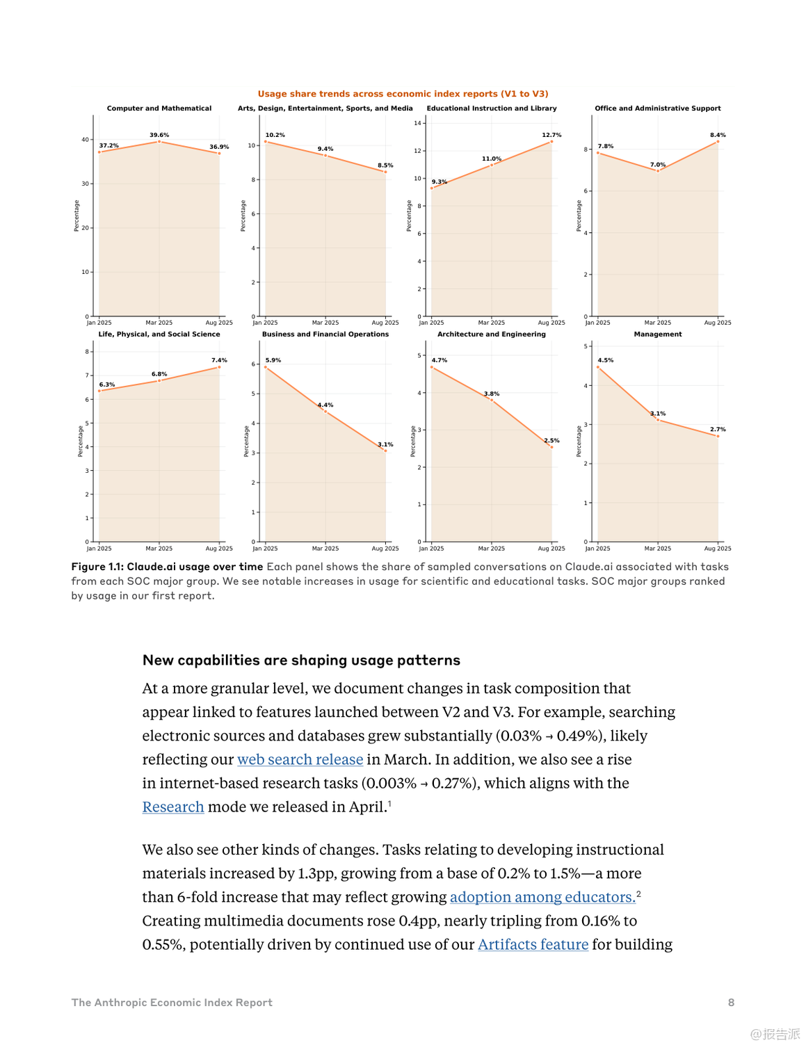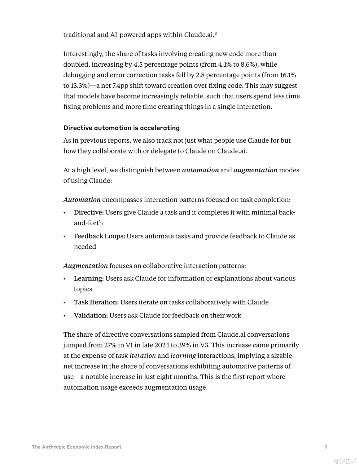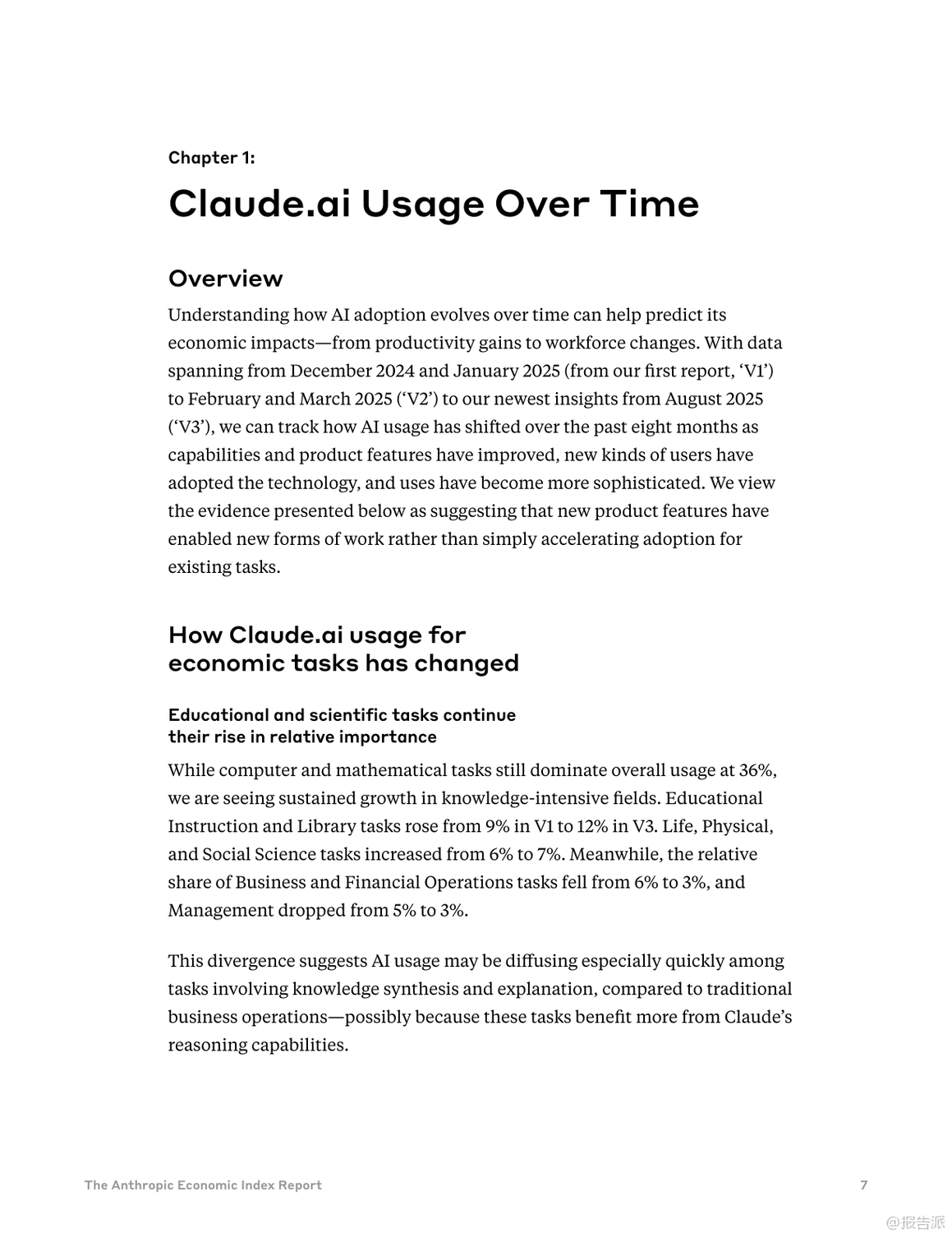 Anthropic最新發(fā)布的《類經(jīng)濟(jì)指數(shù)報(bào)告:不平衡的地理和企業(yè)人工智能采用》揭示了全球AI技術(shù)采納的深刻不平等現(xiàn)象。 報(bào)告指出,AI的普及速度遠(yuǎn)超以往任何技術(shù)——在美國(guó),已有40%的員工在工作中使用AI,而這一比例在兩年前僅為20%。 相比之下,電力、個(gè)人電腦和互聯(lián)網(wǎng)等歷史技術(shù)均需更長(zhǎng)時(shí)間才能達(dá)到類似滲透率。 然而,這種快速擴(kuò)散的背后是顯著的地域與應(yīng)用失衡。 研究引入“Anthropic AI使用指數(shù)(AUI)”,衡量各國(guó)人均AI使用情況。 數(shù)據(jù)顯示,高收入國(guó)家如新加坡(AUI達(dá)4.6)、加拿大(2.9)和以色列(7.0)遙遙領(lǐng)先,而印度(0.27)、印尼(0.36)和尼日利亞(0.2)等新興經(jīng)濟(jì)體則明顯落后。 AI使用與人均GDP呈強(qiáng)正相關(guān),暗示著AI可能加劇全球經(jīng)濟(jì)分化而非促進(jìn)收斂。 在美國(guó)內(nèi)部,AI使用也呈現(xiàn)區(qū)域集中。 華盛頓特區(qū)(AUI 3.82)和猶他州(3.78)的人均使用率超過加州(2.13),反映出地方經(jīng)濟(jì)結(jié)構(gòu)對(duì)AI采納的影響。 例如,DC集中于文檔編輯與職業(yè)發(fā)展支持,加州側(cè)重IT開發(fā),佛羅里達(dá)則聚焦金融服務(wù)。 使用模式上,高采納地區(qū)表現(xiàn)出更強(qiáng)的任務(wù)多樣性與協(xié)作性。 低AUI國(guó)家更多將AI用于編碼任務(wù)(如印度超50%),并傾向于“自動(dòng)化”——即完全委托任務(wù)給AI。 而高AUI國(guó)家則更多應(yīng)用于教育、科學(xué)和商業(yè)領(lǐng)域,并偏好“增強(qiáng)型”互動(dòng),強(qiáng)調(diào)人機(jī)協(xié)同迭代學(xué)習(xí),這可能意味著更深層次的技術(shù)融合能力。 企業(yè)層面,通過API接入的AI部署展現(xiàn)出更高程度的自動(dòng)化特征。 數(shù)據(jù)顯示,77%的企業(yè)應(yīng)用場(chǎng)景屬于自動(dòng)化模式,遠(yuǎn)高于消費(fèi)者端的約50%。 編碼與辦公行政任務(wù)占據(jù)主導(dǎo),教育與創(chuàng)意類任務(wù)占比下降。 值得注意的是,企業(yè)對(duì)成本敏感度較低——高成本任務(wù)反而使用更頻繁,說明決策核心在于技術(shù)適配性與經(jīng)濟(jì)價(jià)值,而非單價(jià)。 此外,復(fù)雜任務(wù)的成功部署高度依賴上下文信息的完整性。 分析發(fā)現(xiàn),輸出長(zhǎng)度較長(zhǎng)的任務(wù)通常需要更多輸入信息,但信息投入的邊際回報(bào)遞減(彈性為0.38)。 這意味著缺乏數(shù)據(jù)整合能力的企業(yè)將在高級(jí)AI應(yīng)用上面臨瓶頸,組織架構(gòu)與數(shù)據(jù)基礎(chǔ)設(shè)施成為關(guān)鍵制約因素。 總體而言,當(dāng)前AI采納仍處于早期階段,集中在少數(shù)高收入地區(qū)與特定任務(wù)領(lǐng)域。 若生產(chǎn)力提升持續(xù)向已發(fā)達(dá)區(qū)域傾斜,全球不平等風(fēng)險(xiǎn)或?qū)⑸仙?br> 未來政策需關(guān)注數(shù)字鴻溝、勞動(dòng)力轉(zhuǎn)型與中小企業(yè)賦能,確保AI紅利更具包容性。 Anthropic已開源全部數(shù)據(jù),鼓勵(lì)獨(dú)立研究推動(dòng)更深入的社會(huì)經(jīng)濟(jì)洞察。 出品方:Anthropic 發(fā)布時(shí)間:2025年 文檔頁數(shù):49頁 |
