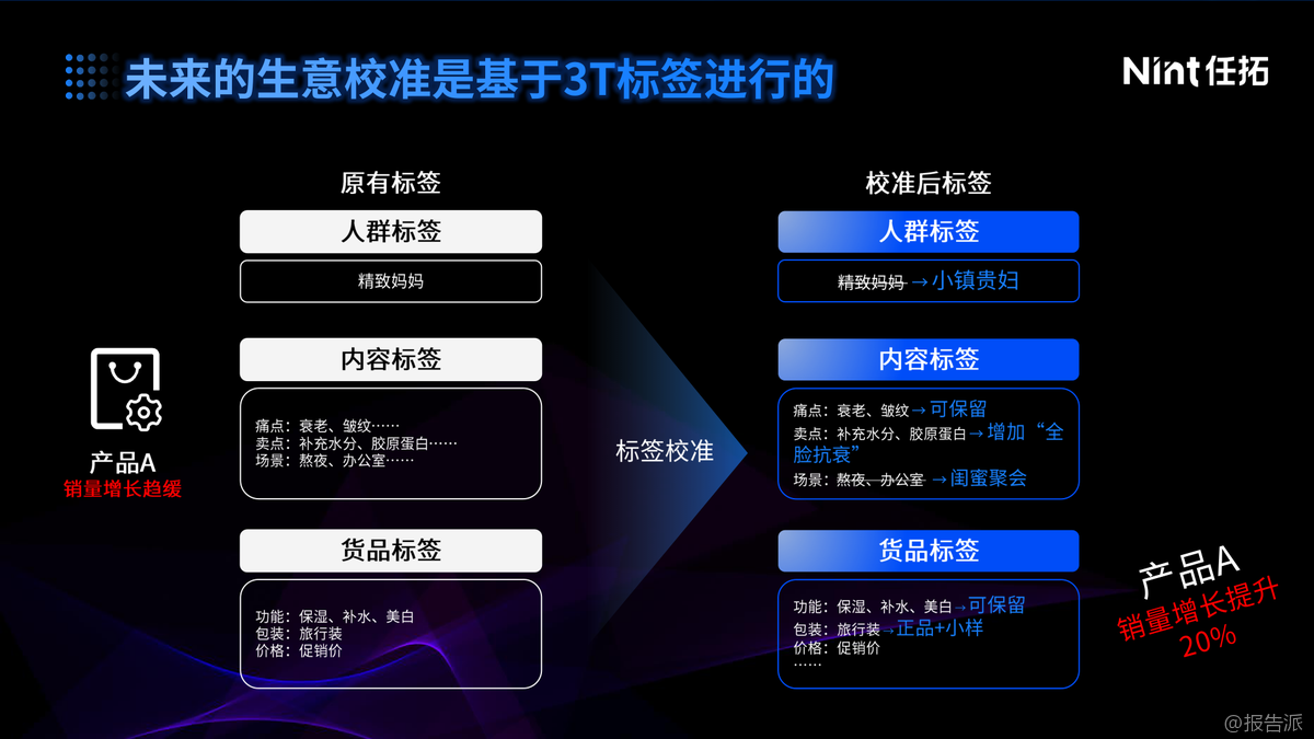 本文主要探討了AI技術在消費品行業(yè)的應用,特別是通過3T標簽科學提升新品和內容回報的效率。 Nint任拓集團CMO曹力分享了如何利用AI洞察操作系統(tǒng)來優(yōu)化內容、提升ROI以及布局新品。 文檔詳細介紹了AI洞察操作系統(tǒng)的三層架構,包括AI交互層、AI算法層和原生數據層。 這些層次共同作用,通過多模態(tài)理解、啟發(fā)式互動和人機交互等技術,將問題及需求轉化為具體的行業(yè)洞察和解決方案。 系統(tǒng)能夠提供關于渠道、定價、內容等方面的建議,從而幫助品牌更有效地推廣產品。 3T標簽科學是該文檔的核心概念之一,它由人設標簽、痛點標簽和賣點標簽組成。 人設標簽用于定義目標人群,例如#精致媽媽或#小鎮(zhèn)青年;痛點標簽則捕捉用戶在特定場景中的問題,如熬夜追劇時對低卡零食的需求;而賣點標簽則是針對痛點提出的解決方案,例如#低卡零食。 此外,文檔還展示了AI+標簽如何在實際業(yè)務場景中落地,特別是在新品提效和內容提效方面。 以某牙膏案例為例,通過分析心智上游品類(如保健品)、挖掘高價值賣點(如益生菌、褪黑素)以及結合場景與痛點標簽,成功找到創(chuàng)新機會點,并預估了市場規(guī)模和復合增長率。 另一個案例涉及香水品牌,通過引入戶外場景標簽矩陣,發(fā)現便攜性、寵物友好型等潛在需求,進一步提出了具體的產品創(chuàng)新機會點及其市場潛力。 最后,文檔還提供了貓營養(yǎng)食品的具體案例,從數據獲取、清洗到標簽表現歸因分析,最終輸出了產品宣稱、內容腳本和電商主圖設計。 這一過程充分體現了AI技術在產品內容提效方面的強大能力。 總之,本報告揭示了AI驅動下的消費品行業(yè)新趨勢,強調了3T標簽科學的重要性,為品牌提供了清晰的策略方向和實踐路徑。 出品方:Nint任拓集團 發(fā)布時間:2025年 文檔頁數:未知 |