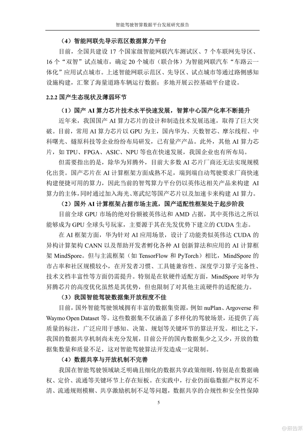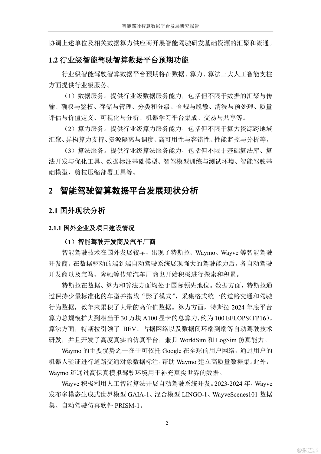 隨著智能駕駛技術(shù)的快速發(fā)展,智能駕駛智算數(shù)據(jù)平臺(tái)的重要性日益凸顯。 這份由中國(guó)汽車工程學(xué)會(huì)人工智能分會(huì)聯(lián)合牽頭發(fā)布的《2025年智能駕駛智算數(shù)據(jù)平臺(tái)發(fā)展研究報(bào)告》全面分析了國(guó)內(nèi)外智能駕駛智算數(shù)據(jù)平臺(tái)的發(fā)展現(xiàn)狀、行業(yè)痛點(diǎn)以及未來(lái)建設(shè)規(guī)劃,為行業(yè)發(fā)展提供了重要參考。 報(bào)告指出,國(guó)外智能駕駛開(kāi)發(fā)商如特斯拉和英偉達(dá)在數(shù)據(jù)、算力和算法方面處于領(lǐng)先地位,而國(guó)內(nèi)企業(yè)則面臨數(shù)據(jù)集開(kāi)放程度不足、AI計(jì)算框架適配性較差以及高價(jià)值數(shù)據(jù)占比低等問(wèn)題。 此外,國(guó)產(chǎn)AI算力芯片技術(shù)水平雖有提升,但在大規(guī)模應(yīng)用中仍存在諸多挑戰(zhàn)。 調(diào)研結(jié)果顯示,國(guó)內(nèi)企業(yè)在數(shù)據(jù)閉環(huán)機(jī)制、路側(cè)數(shù)據(jù)應(yīng)用以及端到端架構(gòu)建設(shè)等方面取得了一定進(jìn)展,但數(shù)據(jù)共享與開(kāi)放機(jī)制不完善、AI專業(yè)技術(shù)人才缺乏等問(wèn)題仍然制約著行業(yè)發(fā)展。 針對(duì)這些問(wèn)題,報(bào)告提出了建立行業(yè)級(jí)智能駕駛智算數(shù)據(jù)平臺(tái)的必要性和建設(shè)目標(biāo)。 平臺(tái)旨在通過(guò)整合行業(yè)內(nèi)整車企業(yè)、智駕供應(yīng)商、研究機(jī)構(gòu)等主體的數(shù)據(jù)、算力和算法資源,推動(dòng)智能駕駛模型開(kāi)發(fā)和應(yīng)用。 具體而言,平臺(tái)將提供數(shù)據(jù)服務(wù)、算力服務(wù)和算法服務(wù)三大支柱功能,涵蓋數(shù)據(jù)匯聚與傳輸、確權(quán)與鑒權(quán)、存儲(chǔ)與管理、分類和分級(jí)、合規(guī)與脫敏、清洗與預(yù)處理等多個(gè)方面。 在平臺(tái)建設(shè)模式上,報(bào)告建議采用“前期小規(guī)模集中式建設(shè)為主、后期持續(xù)分布增量式建設(shè)”的混合建設(shè)模式。 前期依托智能網(wǎng)聯(lián)汽車示范區(qū)及車路云一體化試點(diǎn)城市進(jìn)行核心功能模塊的建設(shè),中期擴(kuò)展平臺(tái)覆蓋范圍并優(yōu)化運(yùn)營(yíng)機(jī)制,長(zhǎng)期目標(biāo)則是構(gòu)建覆蓋全國(guó)的資源協(xié)作網(wǎng)絡(luò),形成完整的智能駕駛生態(tài)系統(tǒng)。 同時(shí),報(bào)告也強(qiáng)調(diào)了平臺(tái)建設(shè)過(guò)程中可能面臨的資金風(fēng)險(xiǎn)、技術(shù)風(fēng)險(xiǎn)、人才風(fēng)險(xiǎn)、政策風(fēng)險(xiǎn)和市場(chǎng)風(fēng)險(xiǎn),并提出了一系列應(yīng)對(duì)措施,包括動(dòng)態(tài)激勵(lì)機(jī)制、商業(yè)化產(chǎn)品矩陣、行業(yè)聯(lián)盟與生態(tài)擴(kuò)展以及創(chuàng)新投資與合作模式等。 通過(guò)這些措施,平臺(tái)能夠有效降低建設(shè)成本和風(fēng)險(xiǎn),確保長(zhǎng)期可持續(xù)運(yùn)營(yíng)。 總體來(lái)看,該報(bào)告不僅詳細(xì)剖析了當(dāng)前智能駕駛領(lǐng)域存在的問(wèn)題,還為行業(yè)級(jí)智能駕駛智算數(shù)據(jù)平臺(tái)的建設(shè)提供了清晰的方向和路徑。 這對(duì)于推動(dòng)我國(guó)智能駕駛技術(shù)的發(fā)展具有重要意義。 出品方:中國(guó)汽車工程學(xué)會(huì)人工智能分會(huì) 發(fā)布時(shí)間:2025年 |