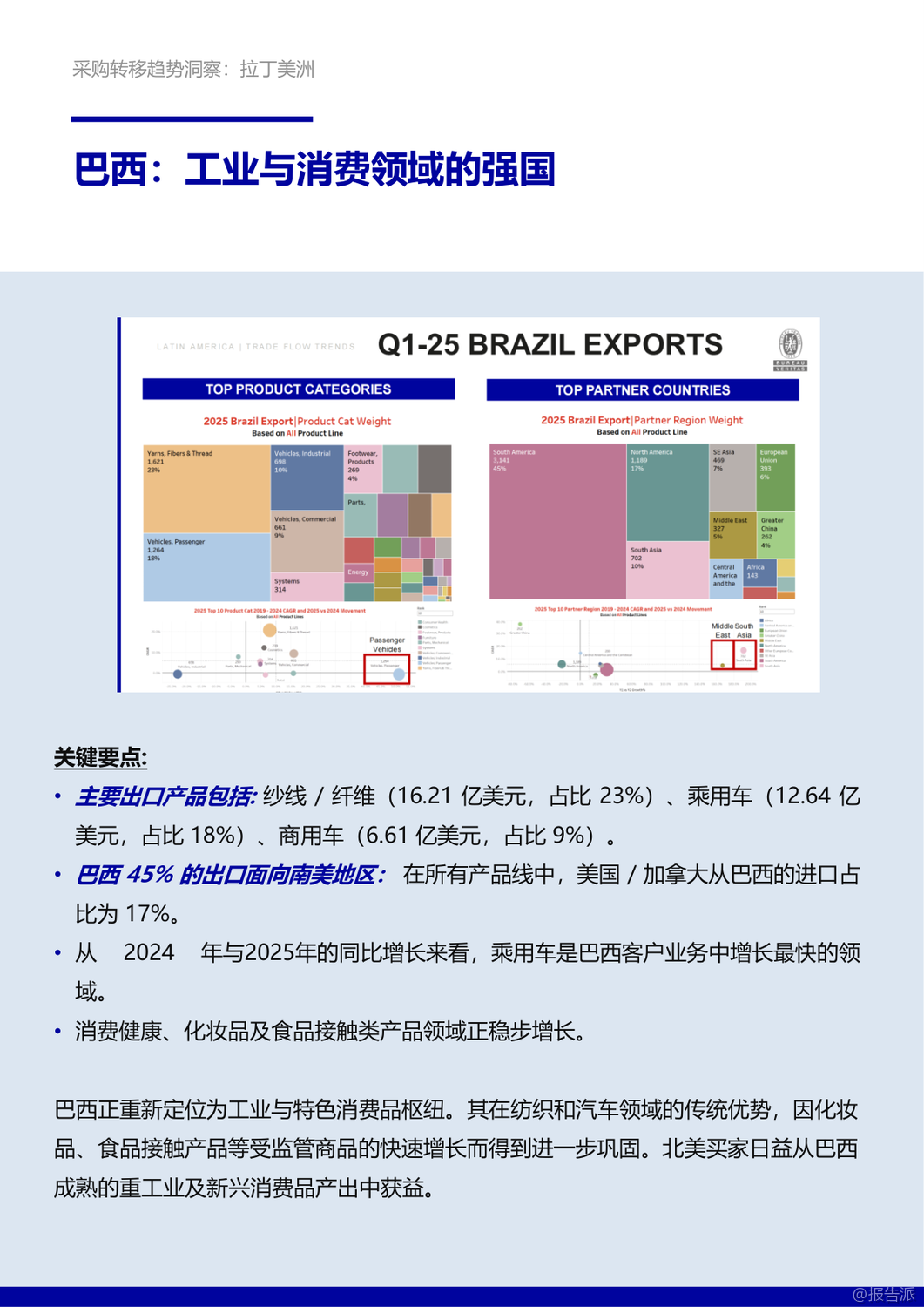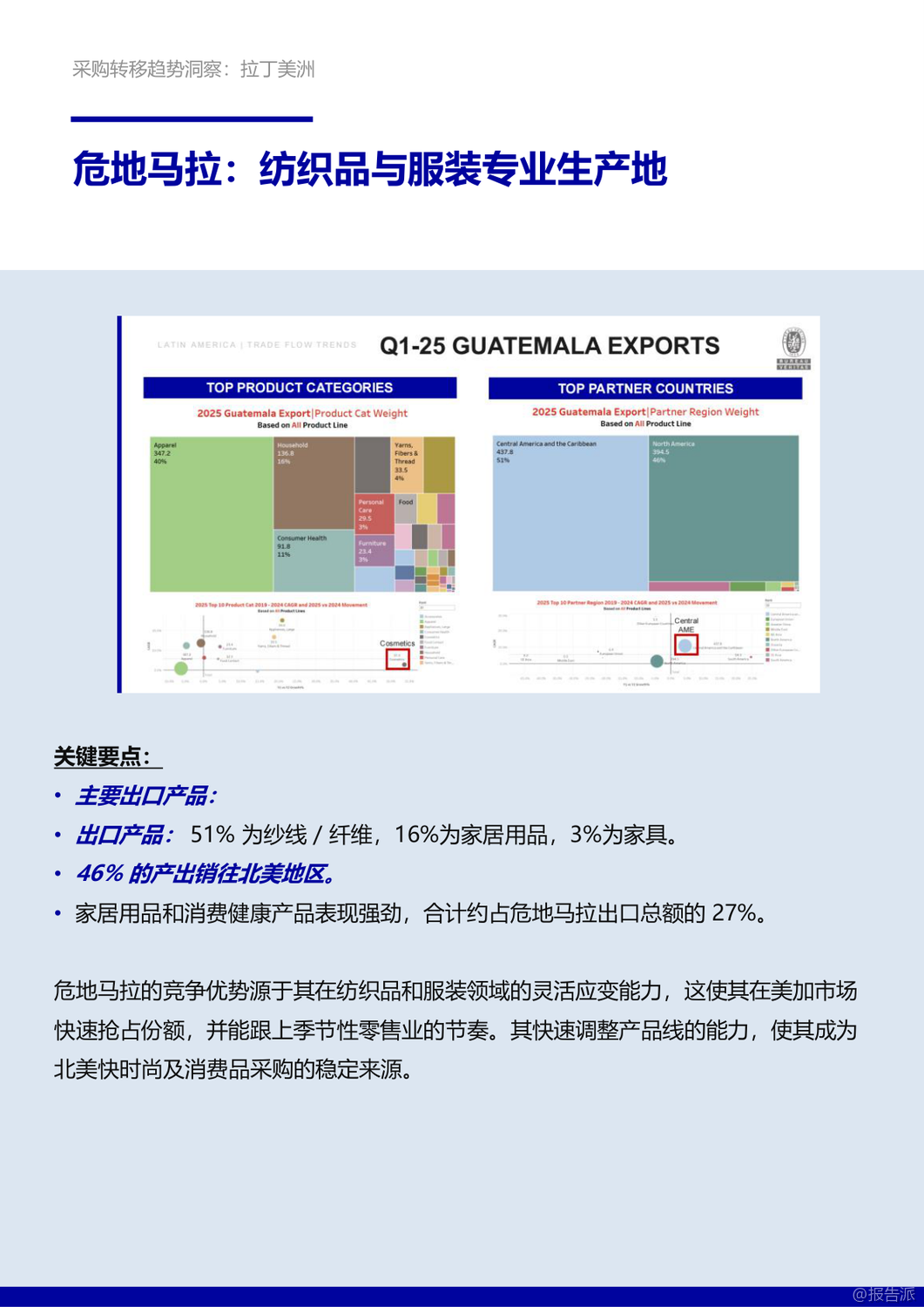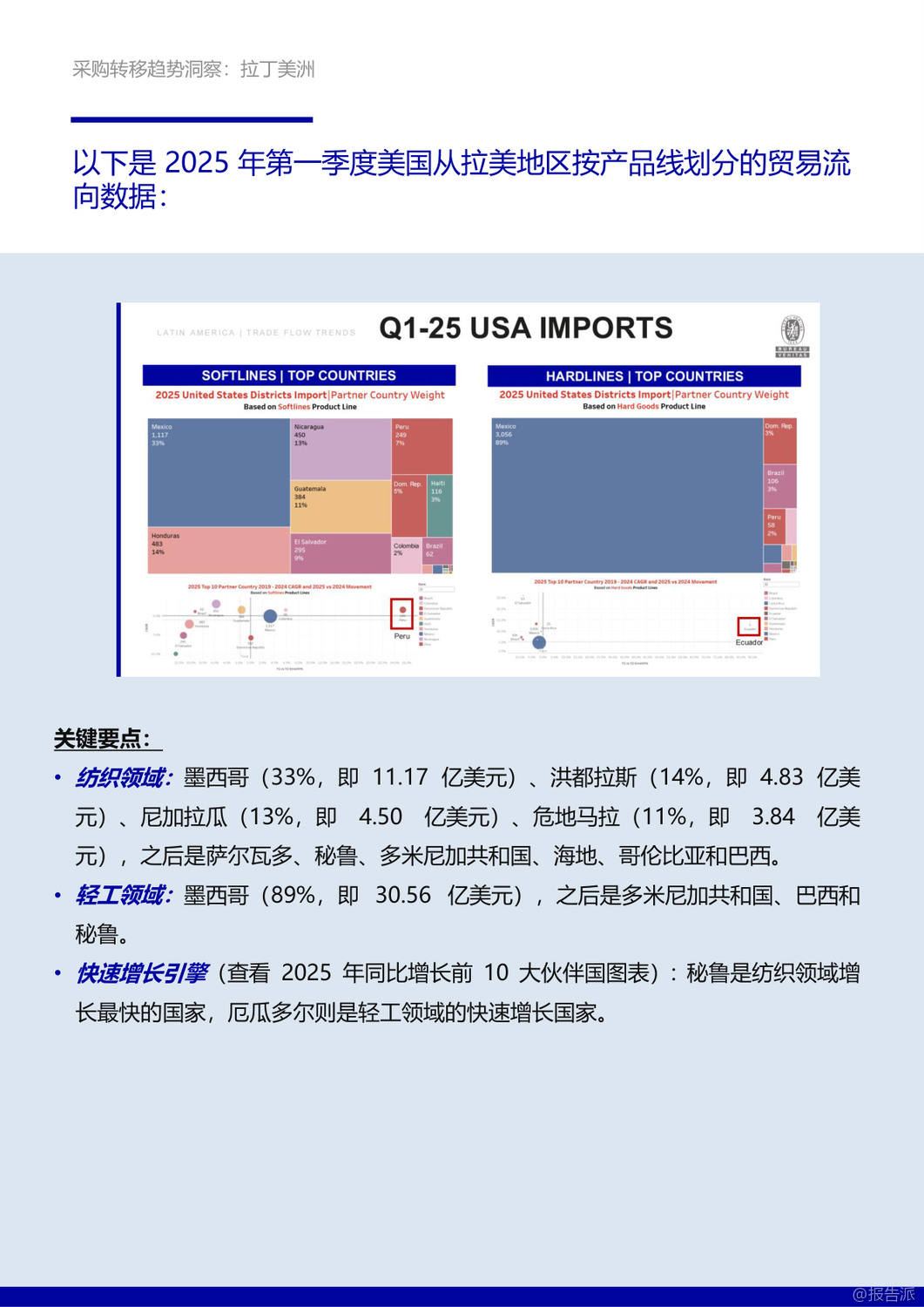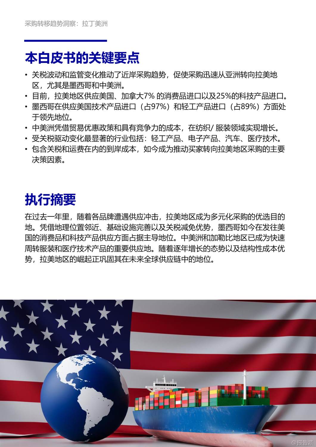 近年來(lái),全球供應(yīng)鏈格局因貿(mào)易戰(zhàn)、地緣政治波動(dòng)和關(guān)稅政策變化而加速重塑。 根據(jù)必維發(fā)布的《2025年采購(gòu)轉(zhuǎn)移趨勢(shì)洞察:拉丁美洲白皮書(shū)》,拉丁美洲正迅速崛起為北美市場(chǎng)關(guān)鍵的近岸采購(gòu)目的地,尤其在美國(guó)和加拿大的科技產(chǎn)品與消費(fèi)品進(jìn)口中占據(jù)越來(lái)越重要的地位。 數(shù)據(jù)顯示,截至2025年第一季度,拉美地區(qū)已供應(yīng)美國(guó)/加拿大7%的消費(fèi)品進(jìn)口和高達(dá)25%的科技產(chǎn)品進(jìn)口,其中墨西哥成為核心樞紐。 墨西哥憑借《美墨加協(xié)定》帶來(lái)的關(guān)稅中性準(zhǔn)入優(yōu)勢(shì),以及地理鄰近性和成熟的制造生態(tài),在多個(gè)高價(jià)值品類中占據(jù)主導(dǎo)地位。 它不僅承擔(dān)了美國(guó)97%的技術(shù)產(chǎn)品進(jìn)口和89%的輕工產(chǎn)品供應(yīng),還在特定品類如玩具(98%)、電子產(chǎn)品(97%)和醫(yī)療技術(shù)產(chǎn)品(71%)中幾乎形成壟斷式供給。 與此同時(shí),墨西哥在辦公I(xiàn)T設(shè)備、乘用車、商用車及醫(yī)療設(shè)備等領(lǐng)域的出口額持續(xù)攀升,成為推動(dòng)北美供應(yīng)鏈本地化的核心力量。 除了墨西哥,中美洲國(guó)家也在特定垂直領(lǐng)域展現(xiàn)出強(qiáng)勁增長(zhǎng)潛力。 洪都拉斯、尼加拉瓜、危地馬拉和薩爾瓦多依托《中美洲-多米尼加共和國(guó)自由貿(mào)易協(xié)定》等優(yōu)惠政策,在紡織和服裝制造方面形成集群效應(yīng)。 例如,洪都拉斯和尼加拉瓜分別有76%和97%的出口集中在服裝領(lǐng)域,而危地馬拉則憑借靈活的生產(chǎn)能力,滿足北美快時(shí)尚品牌的高頻次、短周期交付需求。 多米尼加共和國(guó)和哥斯達(dá)黎加則聚焦高端醫(yī)療科技產(chǎn)業(yè),兩國(guó)醫(yī)療設(shè)備出口分別占其總出口的39%和55%,得益于與美國(guó)FDA的高度監(jiān)管協(xié)同,成為高合規(guī)要求產(chǎn)品的可靠生產(chǎn)基地。 值得注意的是,這一輪采購(gòu)轉(zhuǎn)移不再僅僅基于勞動(dòng)力成本,而是由“到岸總成本”驅(qū)動(dòng),包括關(guān)稅、物流時(shí)效和供應(yīng)鏈韌性。 尤其是在電子產(chǎn)品、汽車、醫(yī)療技術(shù)和輕工制品等行業(yè),品牌更傾向于選擇拉美以規(guī)避長(zhǎng)期不確定性風(fēng)險(xiǎn)。 此外,巴西作為南美工業(yè)強(qiáng)國(guó),正從傳統(tǒng)汽車和紡織出口向消費(fèi)健康、化妝品和食品接觸類產(chǎn)品延伸,逐步構(gòu)建多元化的高附加值出口結(jié)構(gòu)。 然而,向拉美轉(zhuǎn)移并非沒(méi)有挑戰(zhàn)。 除墨西哥和巴西外,多數(shù)國(guó)家存在供應(yīng)商分散、基礎(chǔ)設(shè)施薄弱、監(jiān)管標(biāo)準(zhǔn)不一和專業(yè)技能短缺等問(wèn)題。 特別是在醫(yī)療科技和電子等受監(jiān)管行業(yè),質(zhì)量控制體系的建設(shè)尤為關(guān)鍵。 為此,必維提出“供應(yīng)鏈韌性計(jì)劃”,通過(guò)供應(yīng)商評(píng)估、上游質(zhì)量控制、全流程質(zhì)量保證和咨詢服務(wù)四大模塊,幫助企業(yè)實(shí)現(xiàn)缺陷率下降20%、離岸價(jià)降低4%、質(zhì)量合格率提升6%等可量化效益。 總體來(lái)看,2025年拉美已不再是邊緣化的補(bǔ)充產(chǎn)能,而是全球供應(yīng)鏈重構(gòu)中的戰(zhàn)略性支點(diǎn)。 對(duì)于中國(guó)品牌或跨國(guó)企業(yè)而言,布局墨西哥、中美洲及加勒比地區(qū)的差異化產(chǎn)能,既是應(yīng)對(duì)貿(mào)易摩擦的風(fēng)險(xiǎn)對(duì)沖手段,也是提升響應(yīng)速度和合規(guī)能力的戰(zhàn)略選擇。 未來(lái),誰(shuí)能率先建立本地化質(zhì)量管控與合規(guī)體系,誰(shuí)就能真正抓住拉美近岸外包的歷史性機(jī)遇。 出品方:必維 發(fā)布時(shí)間:2025年 |