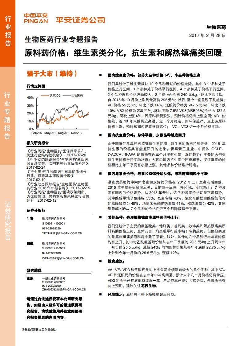 20170228-平安證券:生物醫(yī)藥行業(yè)專題報告-原料藥價格,維生素類分化,抗生素和解熱鎮(zhèn)痛類回暖-20頁