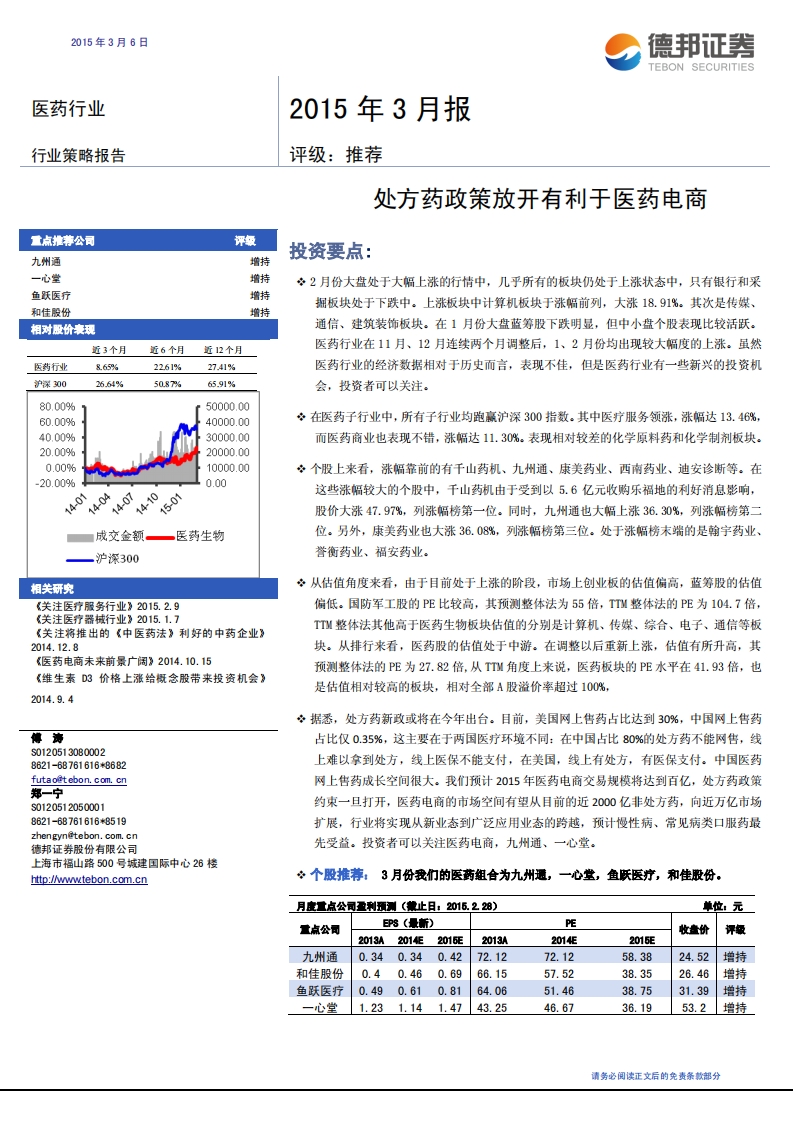 20150306-德邦證券:醫(yī)藥2015年3月報-處方藥政策放開有利于醫(yī)藥電商-22頁