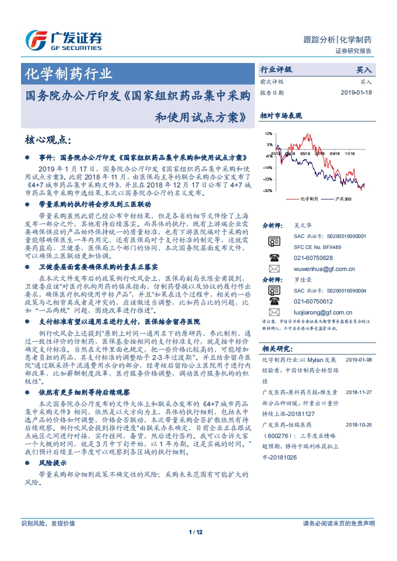 2019-01-18-廣發(fā)證券--化學(xué)制藥行業(yè)-國務(wù)院辦公廳印發(fā)《國家組織藥品集中采購和使用試點(diǎn)方案》