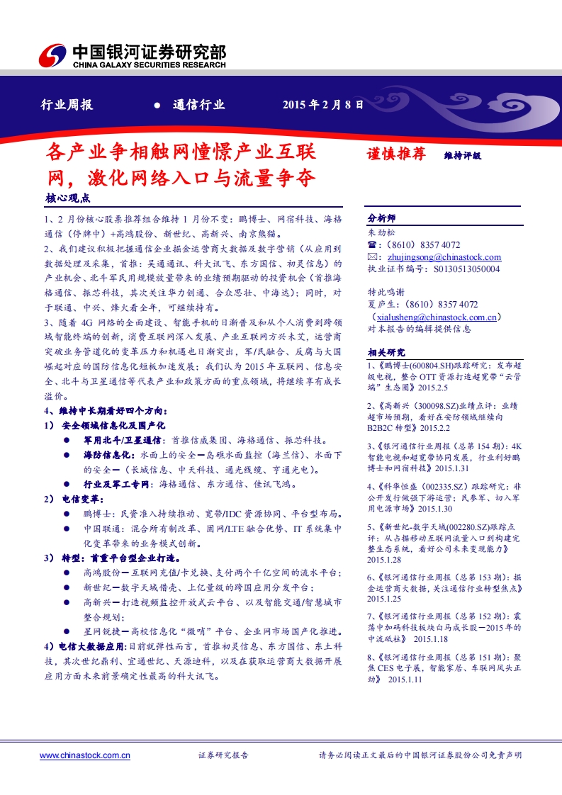 20150208-中國銀河:通信行業(yè)周報-各產業(yè)爭相觸網憧憬產業(yè)互聯(lián)網,激化網絡入口與流量爭奪-18頁