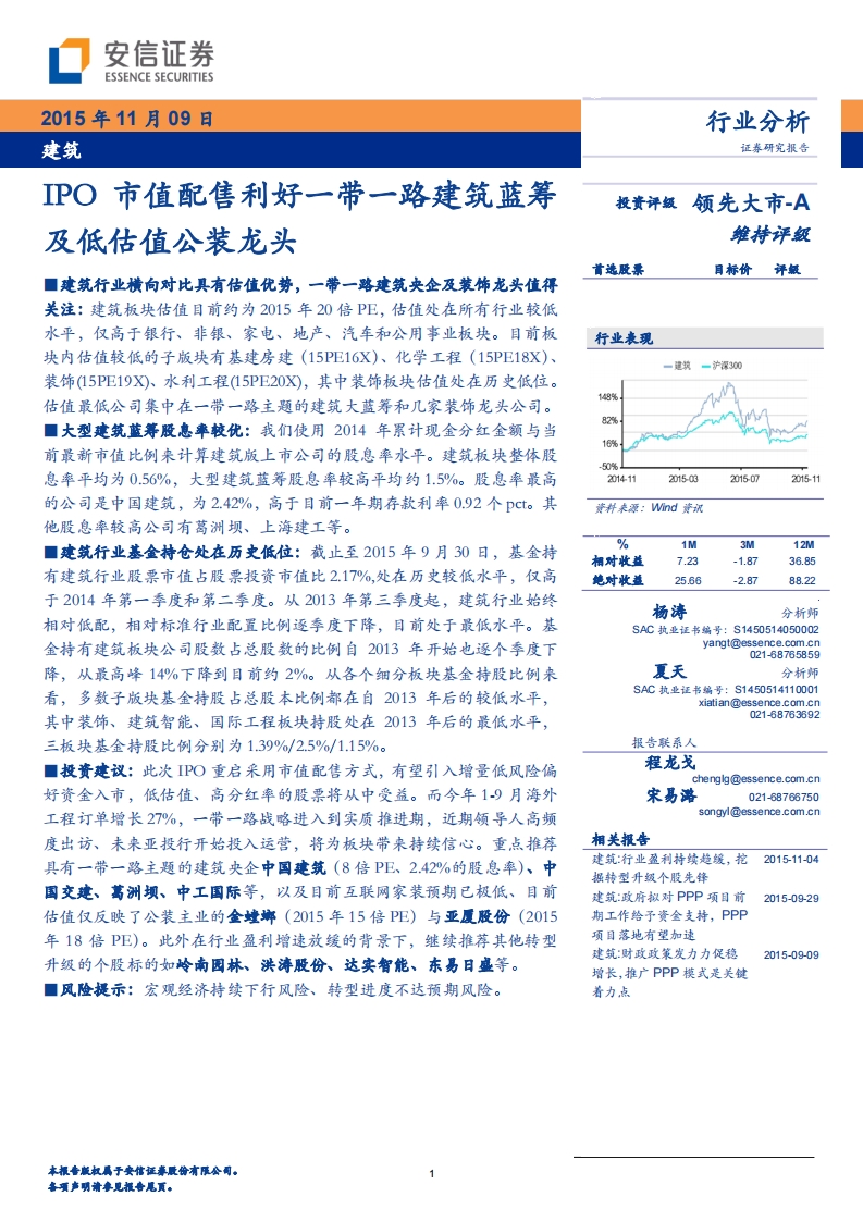 20151109-安信證券:建筑行業(yè)-IPO市值配售利好一帶一路建筑藍(lán)籌及低估值公裝龍頭-11頁(yè)