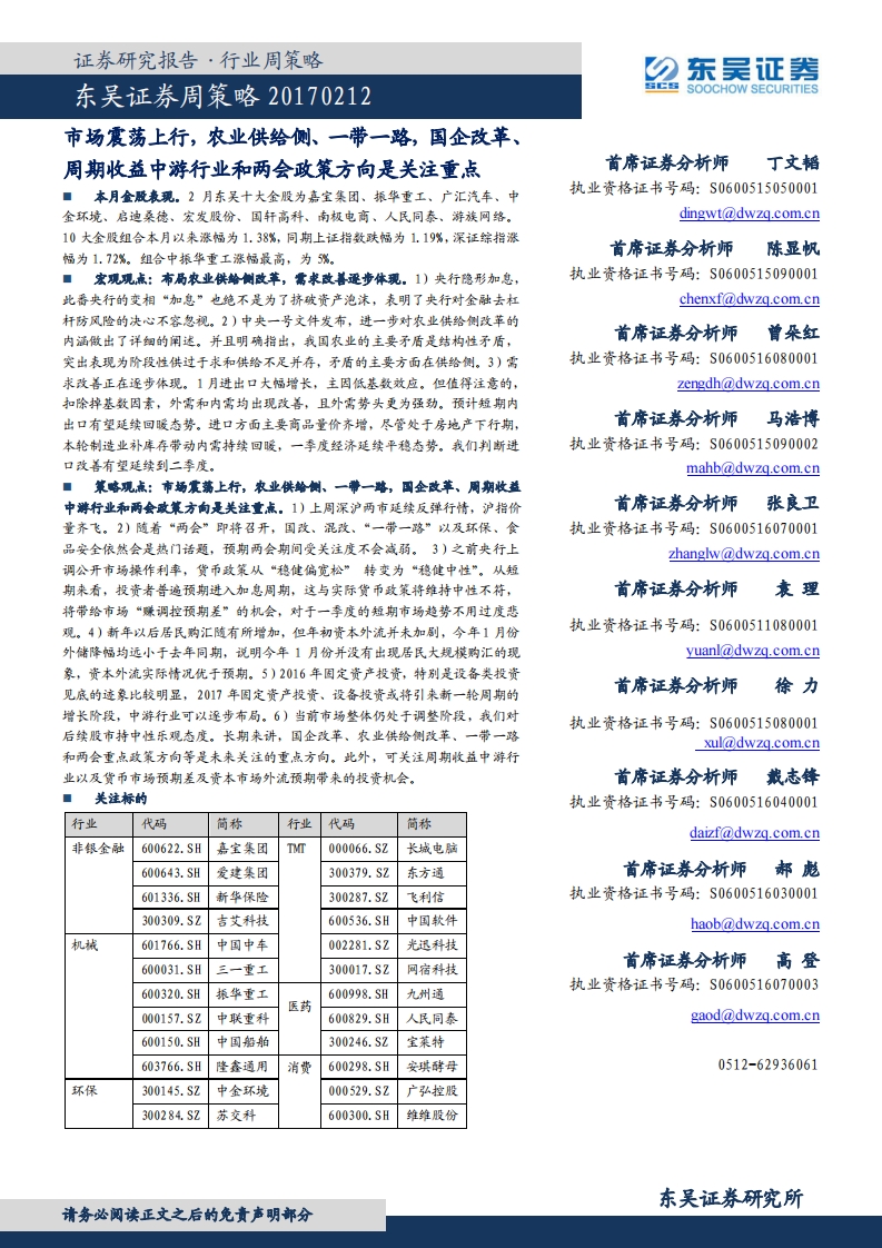 20170205-東吳證券:周策略-市場震蕩上行,農(nóng)業(yè)供給側(cè)、一帶一路,國企改革、周期收益中游行業(yè)和兩會政策方向是關(guān)注重點-11頁