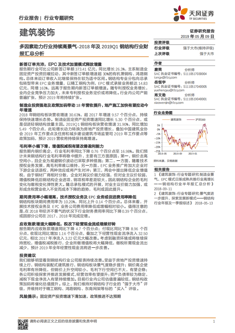 建筑裝飾行業(yè)專題研究:2018年及2019Q1鋼結(jié)構(gòu)行業(yè)財(cái)報(bào)匯總分析:多因素助力行業(yè)持續(xù)高景氣