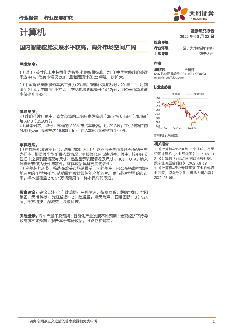 2022-09-05-天風證券--計算機行業(yè)深度研究:國內(nèi)智能座艙發(fā)展水平較高,海外市場空間廣闊