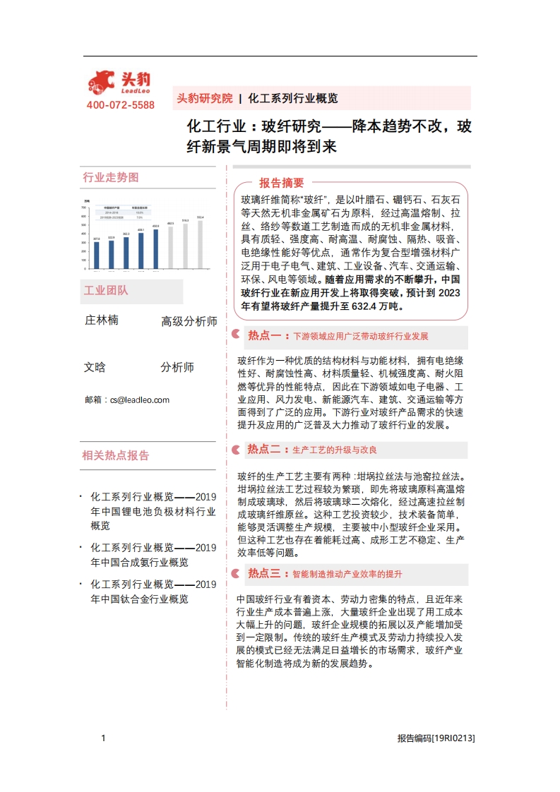 化工行業(yè):玻纖研究——降本趨勢不改,玻纖新景氣周期即將到來