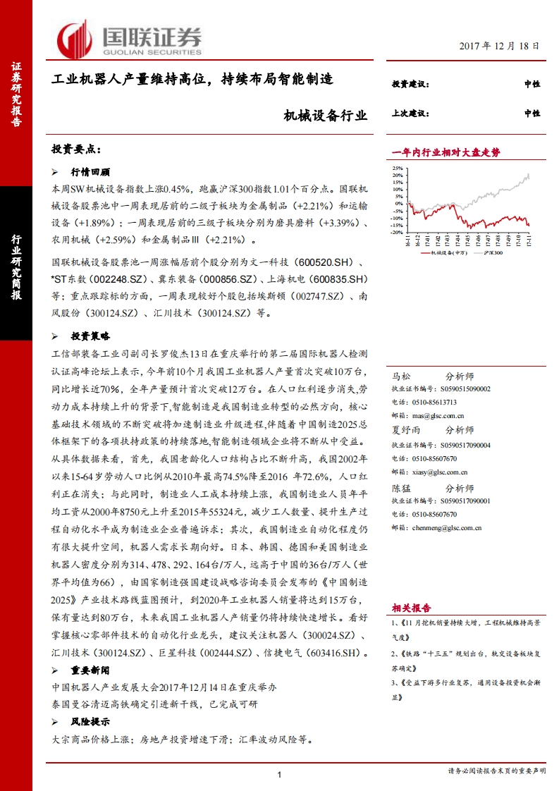 機械設(shè)備行業(yè):工業(yè)機器人產(chǎn)量維持高位,持續(xù)布局智能制造