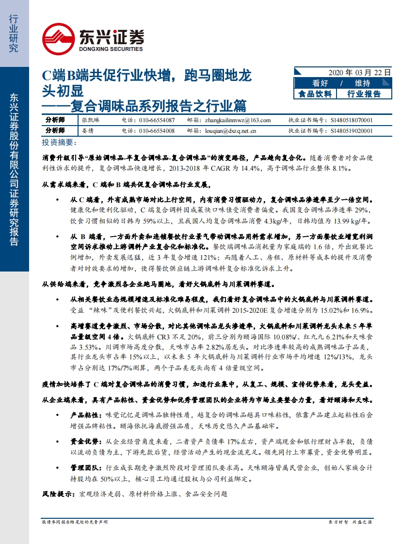 食品飲料:復合調(diào)味品系列報告之行業(yè)篇-C端B端共促行業(yè)快增,跑馬圈地龍頭初顯
