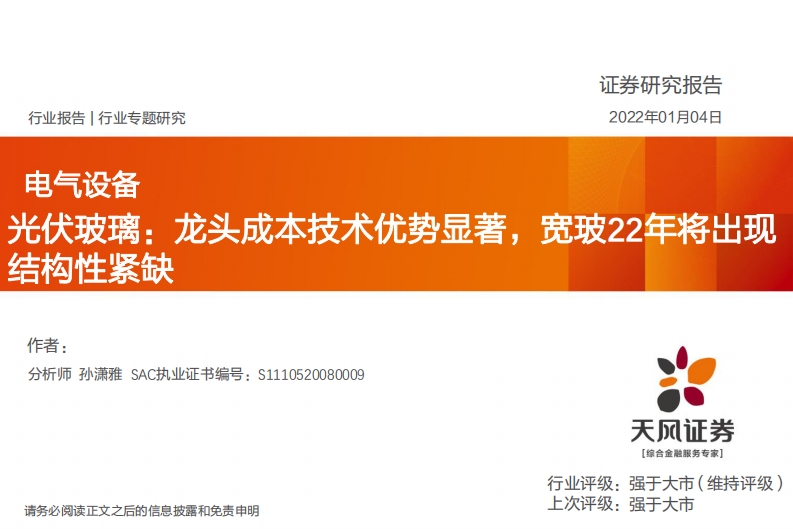 光伏玻璃:龍頭成本技術優(yōu)勢顯著,寬玻22年將出現(xiàn)結構性緊缺