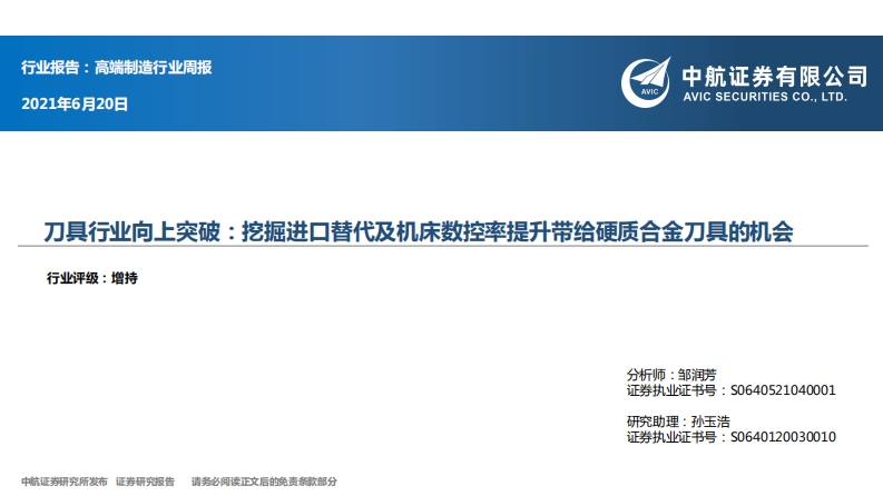 高端制造行業(yè)周報(bào):刀具行業(yè)向上突破:挖掘進(jìn)口替代及機(jī)床數(shù)控率提升帶給硬質(zhì)合金刀具的機(jī)會(huì)