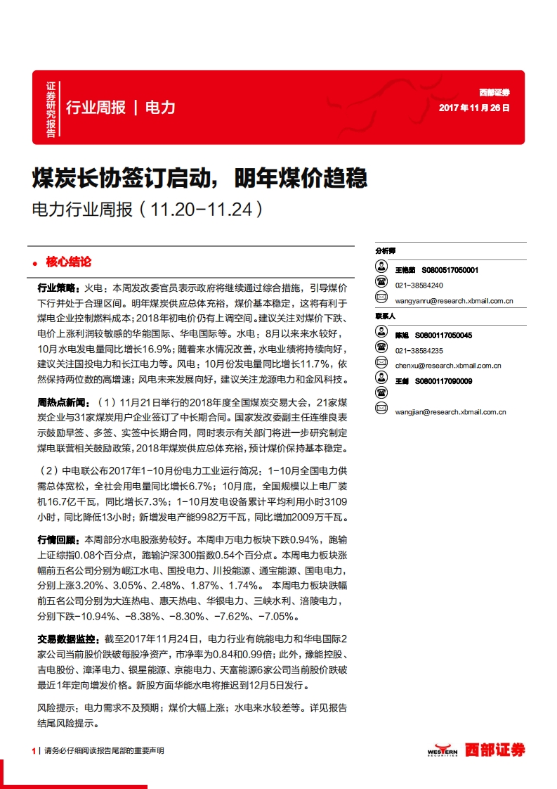 電力行業(yè)周報:煤炭長協(xié)簽訂啟動,明年煤價趨穩(wěn)