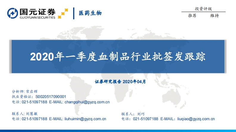 2020年一季度血制品行業(yè)批簽發(fā)跟蹤