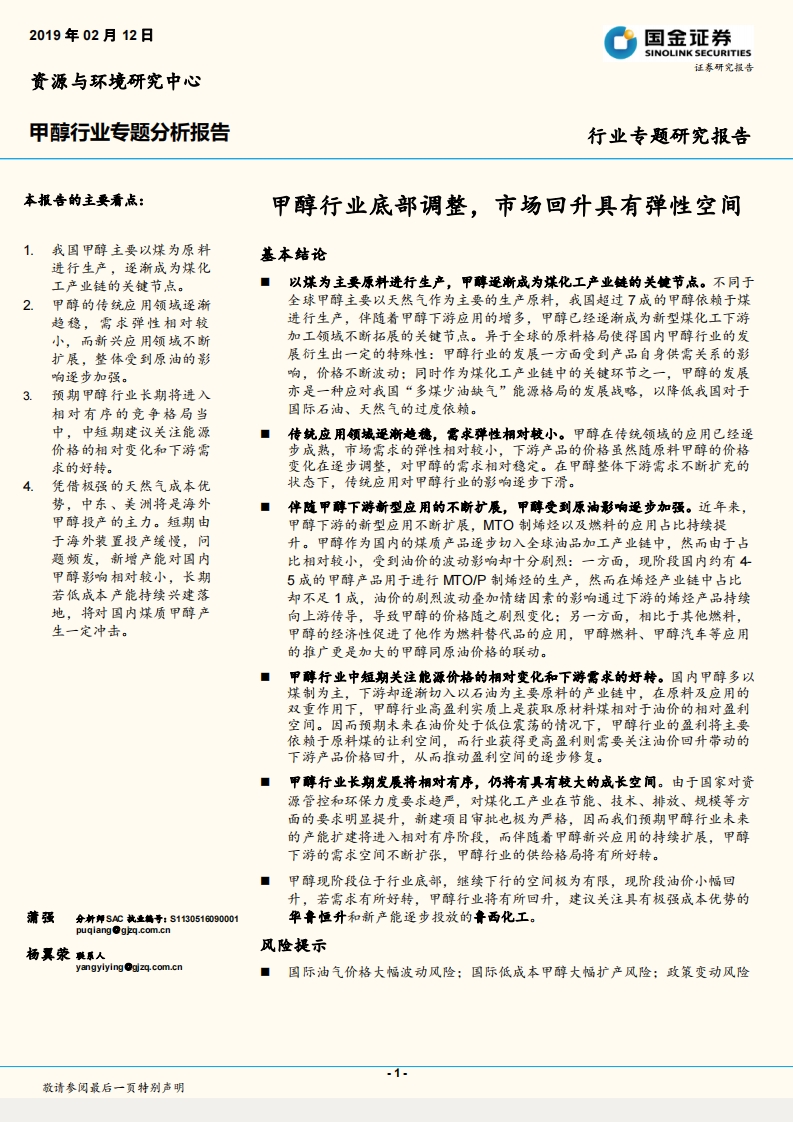甲醇行業(yè)專題分析報(bào)告:甲醇行業(yè)底部調(diào)整,市場(chǎng)回升具有彈性空間