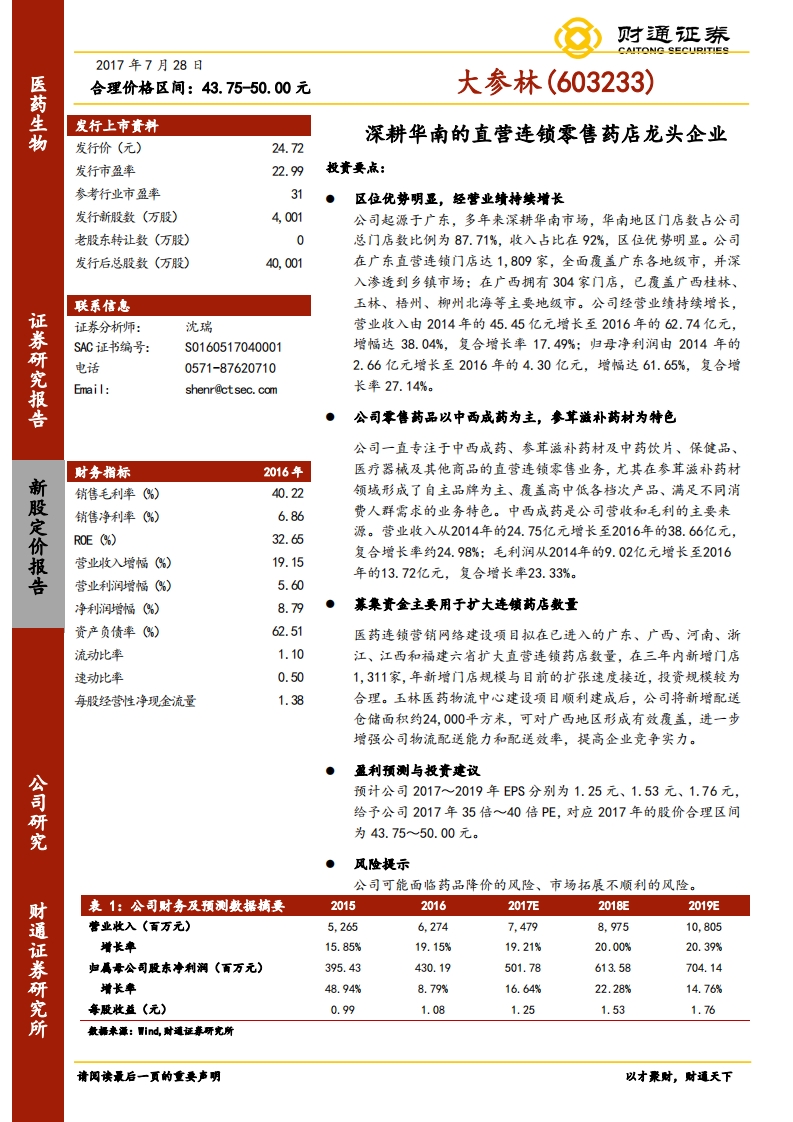 2017-07-28-財(cái)通證券-大參林-深耕華南的直營連鎖零售藥店龍頭企業(yè)