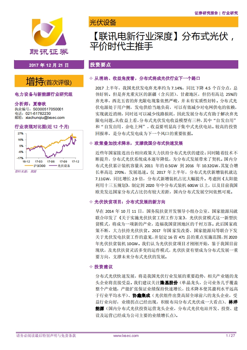 【聯(lián)訊電新行業(yè)深度】分布式光伏,平價(jià)時(shí)代主推手