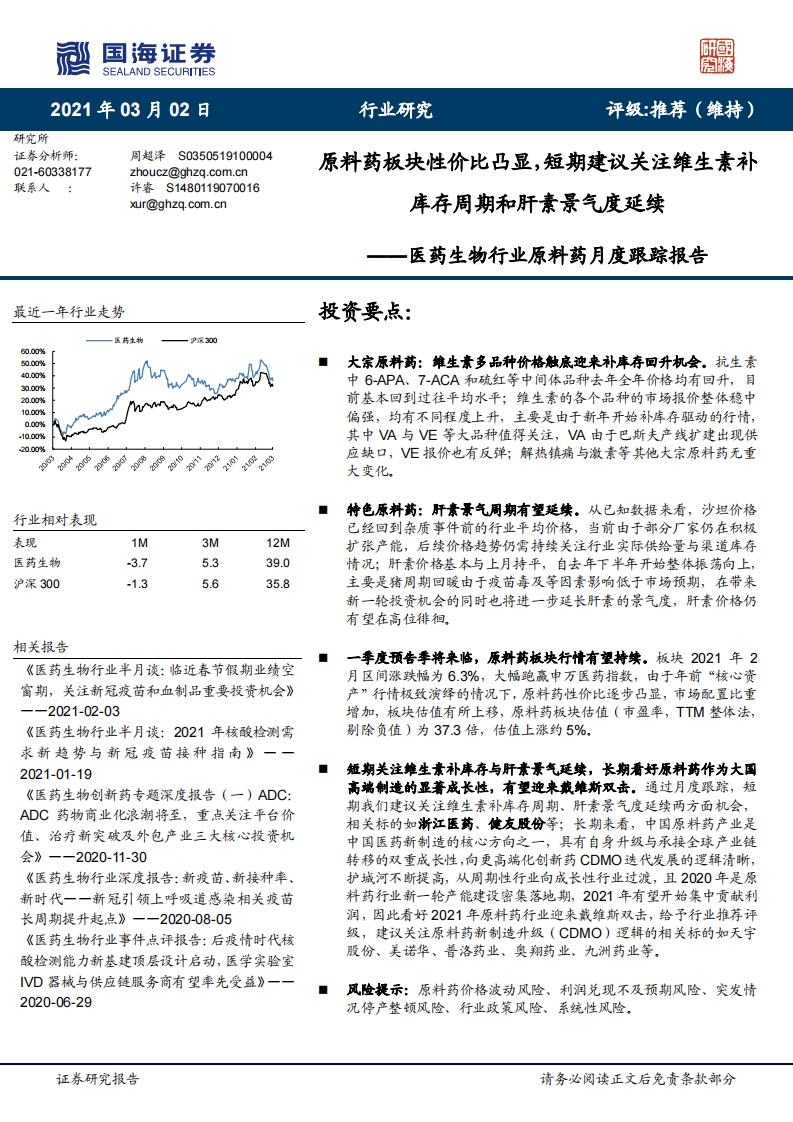 醫(yī)藥生物行業(yè)原料藥月度跟蹤報(bào)告:原料藥板塊性價(jià)比凸顯,短期建議關(guān)注維生素補(bǔ)庫(kù)存周期和肝素景氣度延續(xù)