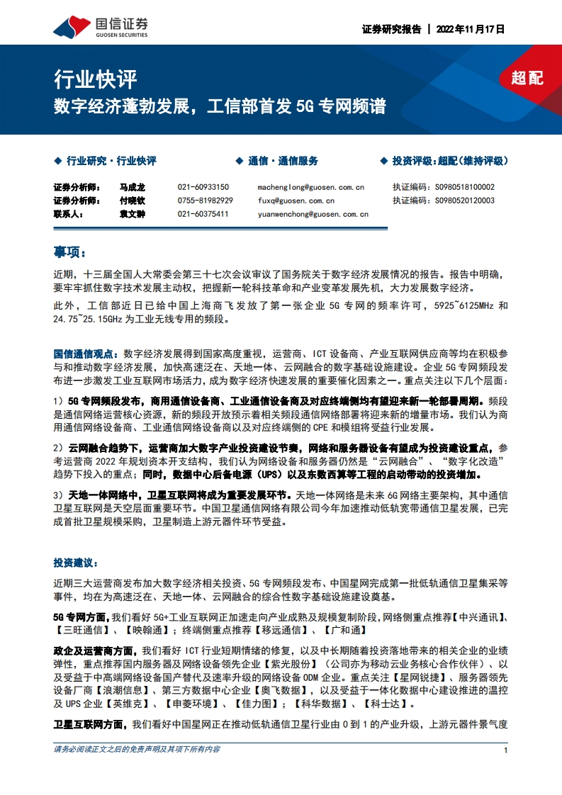 2022-11-18-國信證券--通信服務(wù)行業(yè)快評:數(shù)字經(jīng)濟(jì)蓬勃發(fā)展,工信部首發(fā)5G專網(wǎng)頻譜