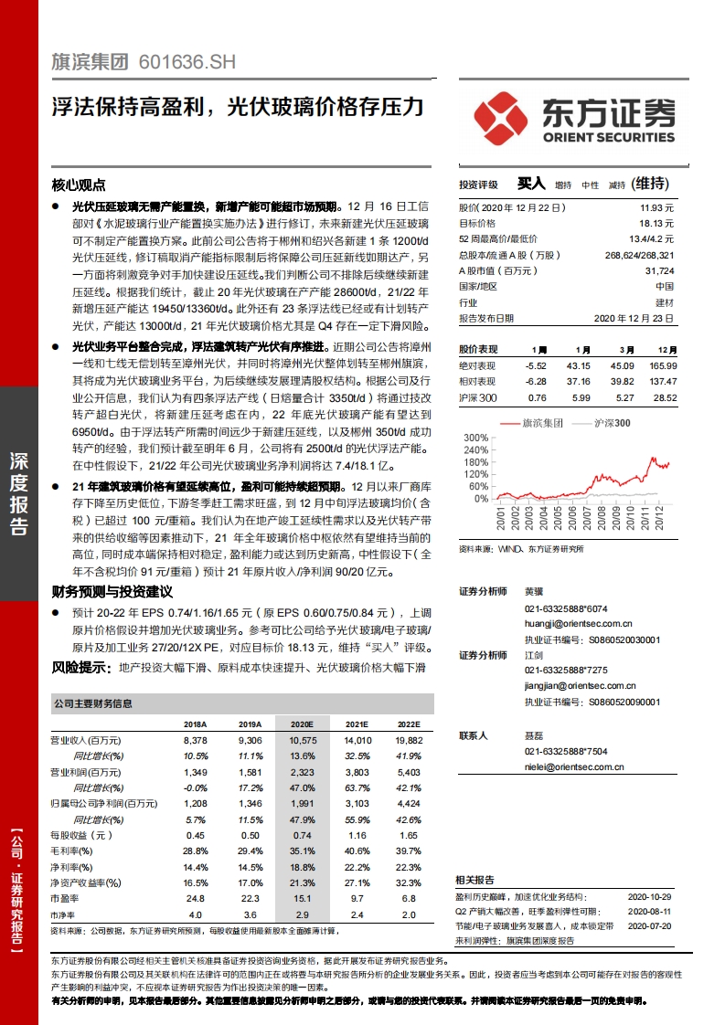 2020-12-23-東方證券-旗濱集團(tuán)-浮法保持高盈利,光伏玻璃價(jià)格存壓力
