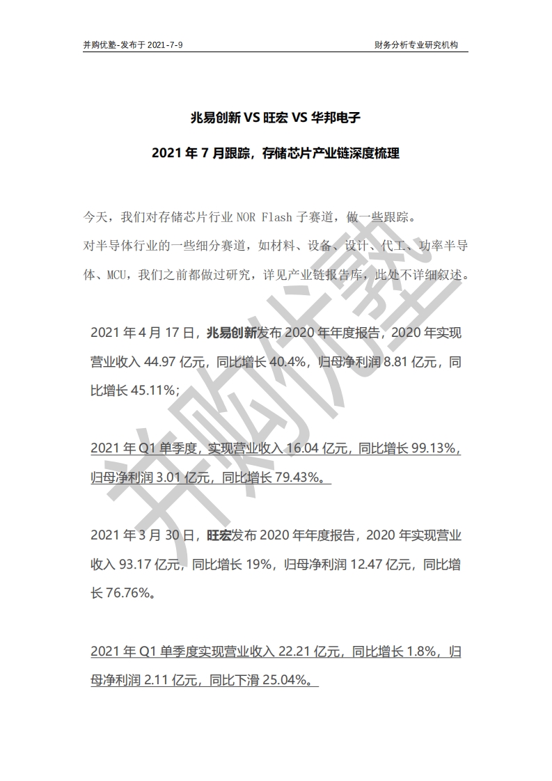 兆易創(chuàng)新VS旺宏VS華邦電子:2021年7月跟蹤,存儲芯片產(chǎn)業(yè)鏈深度梳理
