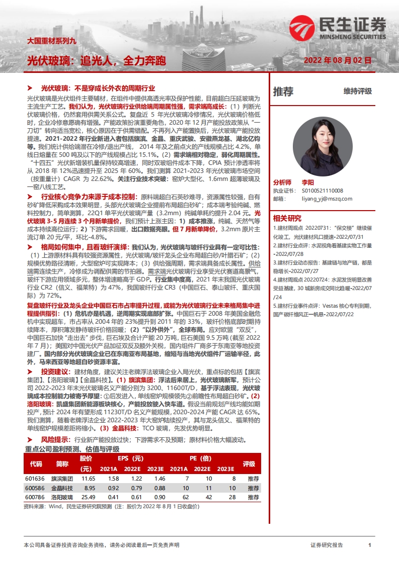 2022-08-03-民生證券--大國重材系列九:光伏玻璃:追光人,全力奔跑