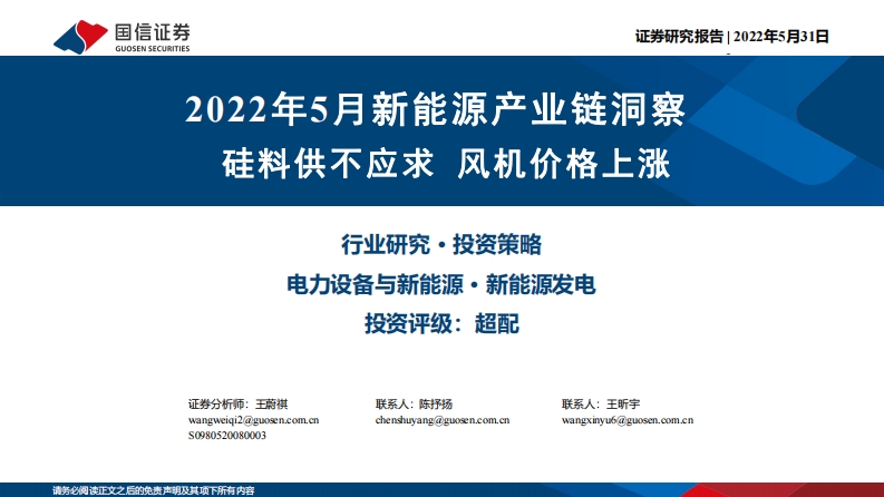 2022-05-31-國信證券-2022年5月新能源產(chǎn)業(yè)鏈洞察:硅料供不應(yīng)求 風(fēng)機價格上漲