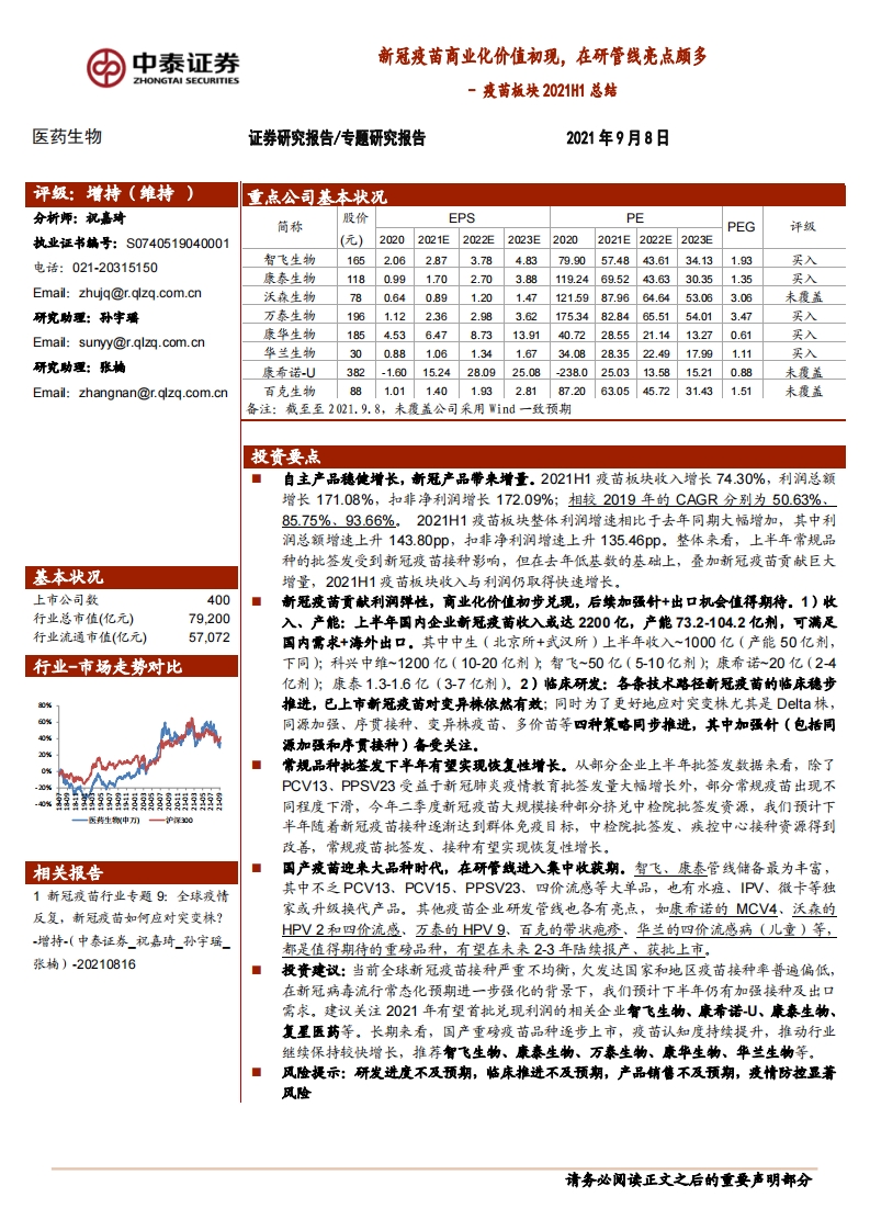 疫苗板塊2021H1總結(jié):新冠疫苗商業(yè)化價值初現(xiàn),在研管線亮點頗多