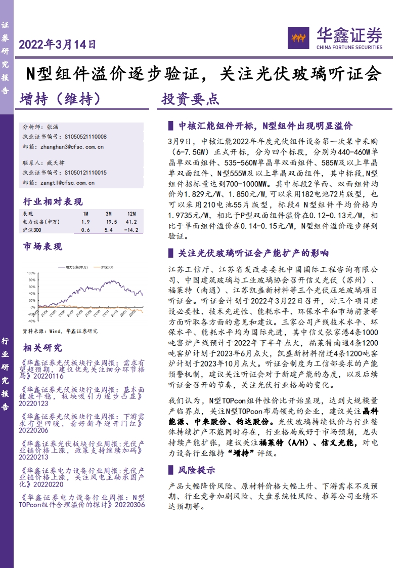 電力設(shè)備:N型組件溢價(jià)逐步驗(yàn)證,關(guān)注光伏玻璃聽證會(huì)