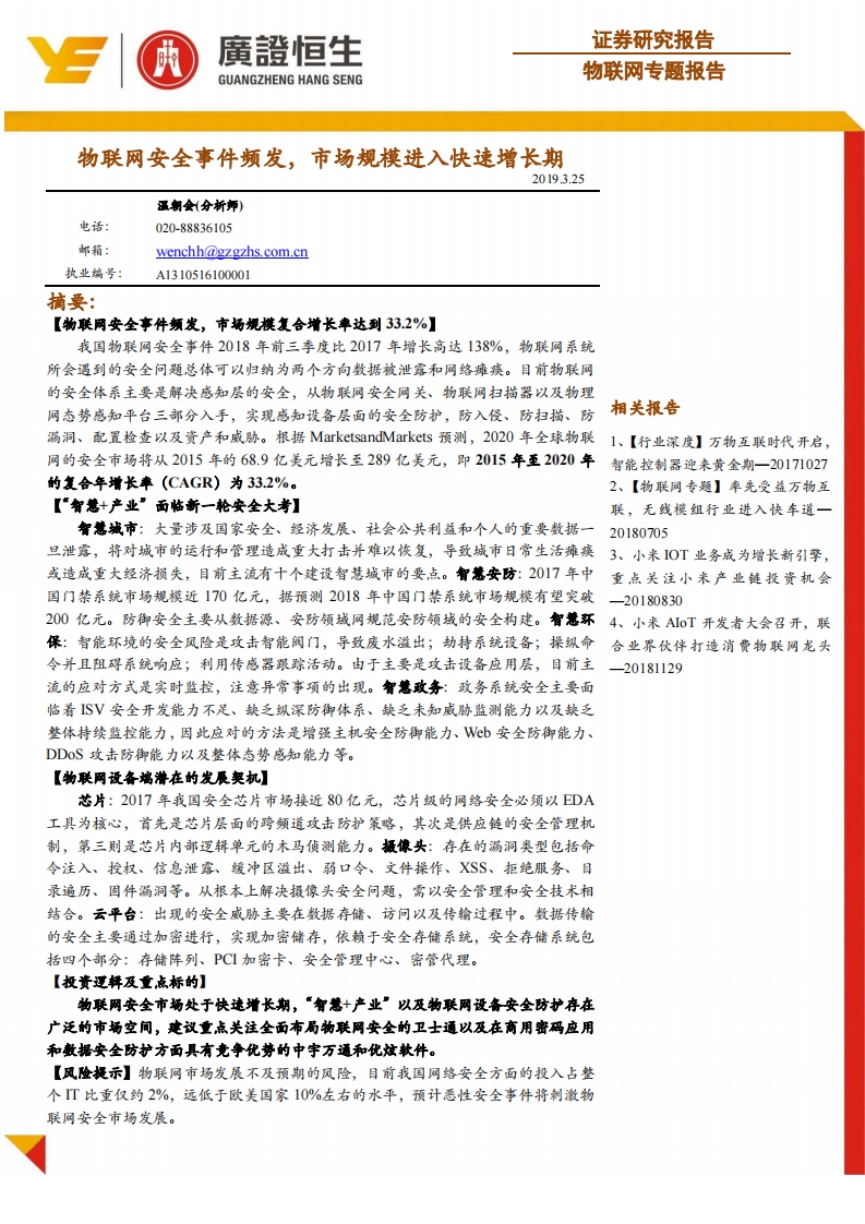 物聯(lián)網(wǎng)專(zhuān)題報(bào)告:物聯(lián)網(wǎng)安全事件頻發(fā),市場(chǎng)規(guī)模進(jìn)入快速增長(zhǎng)期