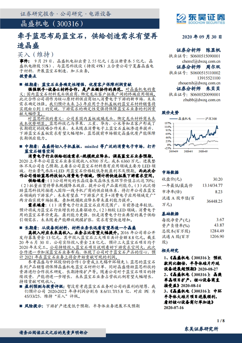2020-09-30-東吳證券-晶盛機(jī)電-牽手藍(lán)思布局藍(lán)寶石,供給創(chuàng)造需求有望再造晶盛