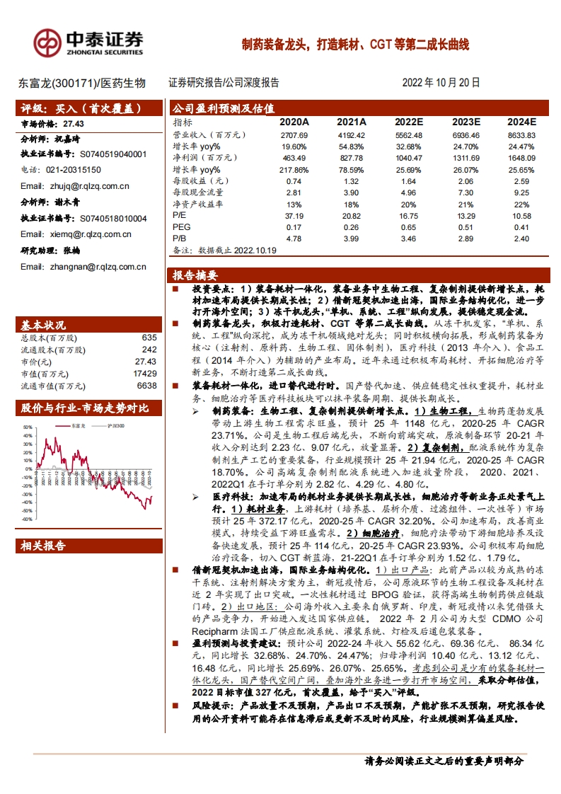 2022-10-21-中泰證券-東富龍-制藥裝備龍頭,打造耗材、CGT等第二成長曲線