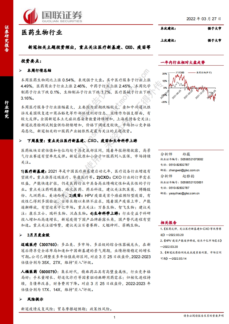 醫(yī)藥生物行業(yè):新冠相關主題投資頻出,重點關注醫(yī)療新基建、CXO、疫苗等