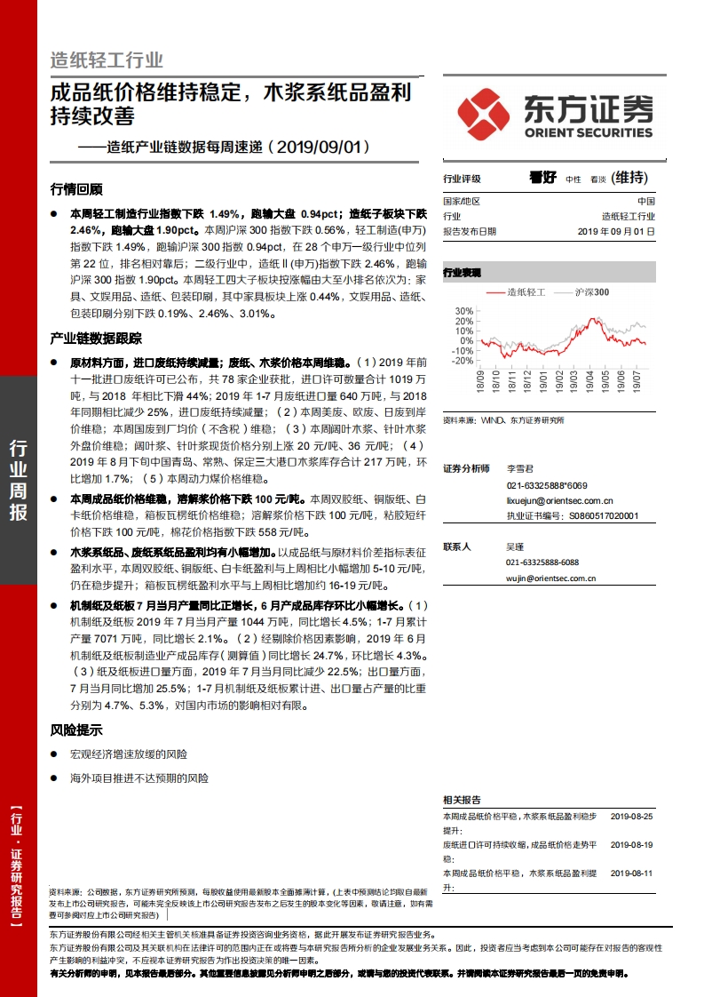 造紙產(chǎn)業(yè)鏈數(shù)據(jù)每周速遞:成品紙價格維持穩(wěn)定,木漿系紙品盈利持續(xù)改善