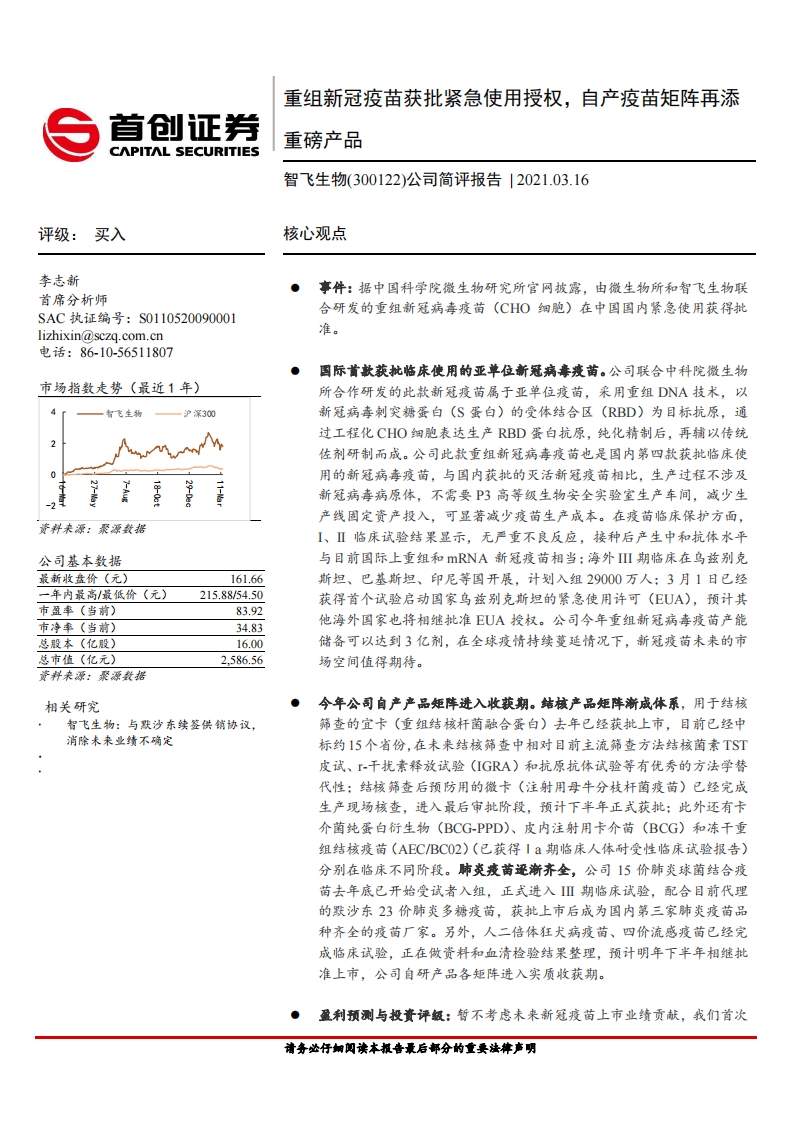 2021-03-17-首創(chuàng)證券-智飛生物-公司簡(jiǎn)評(píng)報(bào)告:重組新冠疫苗獲批緊急使用授權(quán),自產(chǎn)疫苗矩陣再添重磅產(chǎn)品