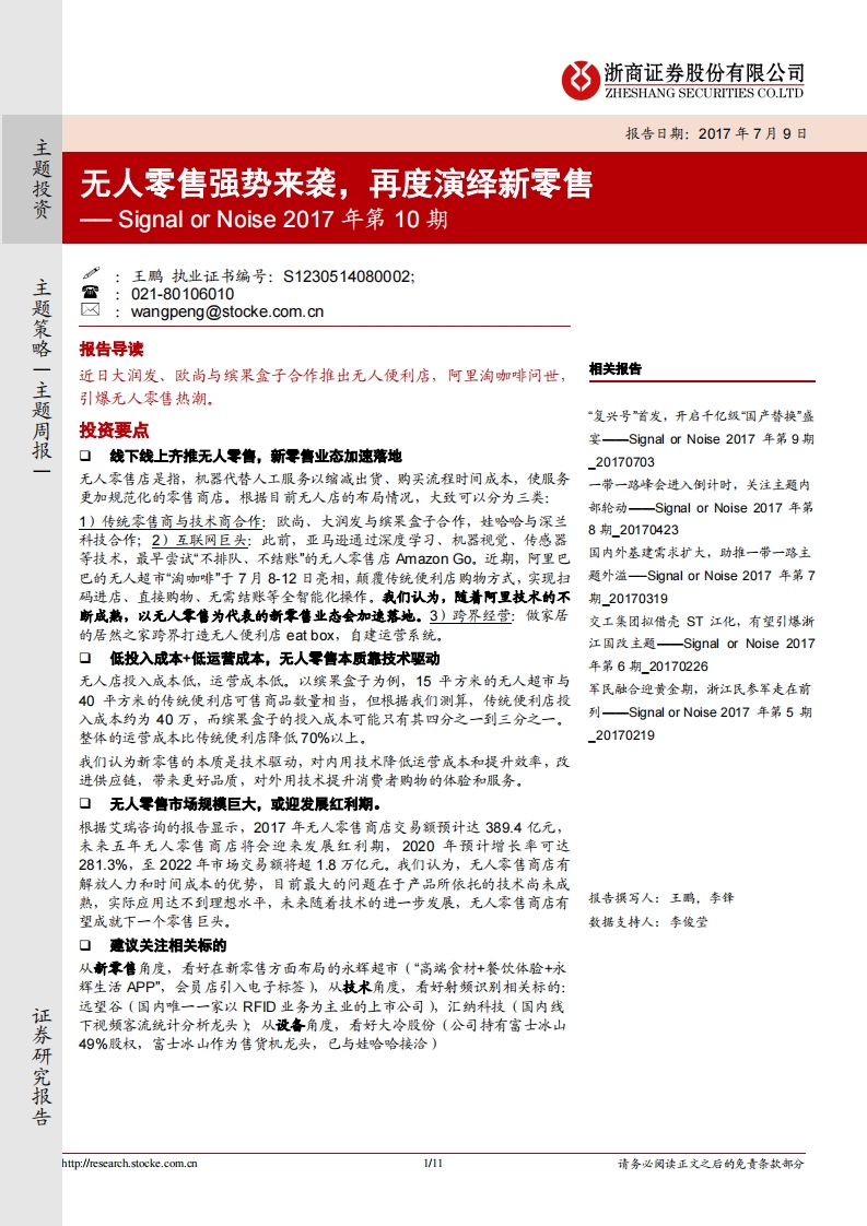 20170709-浙商證券:Signal or Noise 2017年第10期-無人零售強勢來襲,再度演繹新零售-11頁