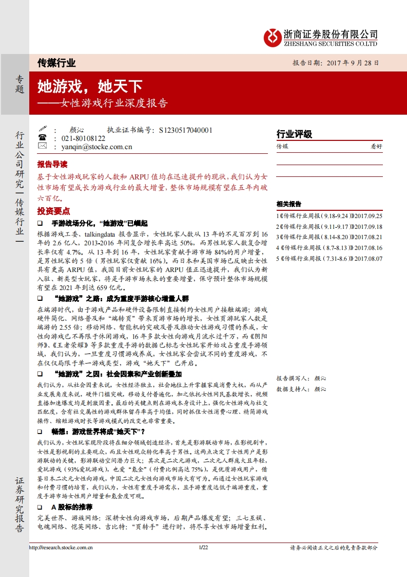 女性游戲行業(yè)深度報(bào)告:她游戲,她天下