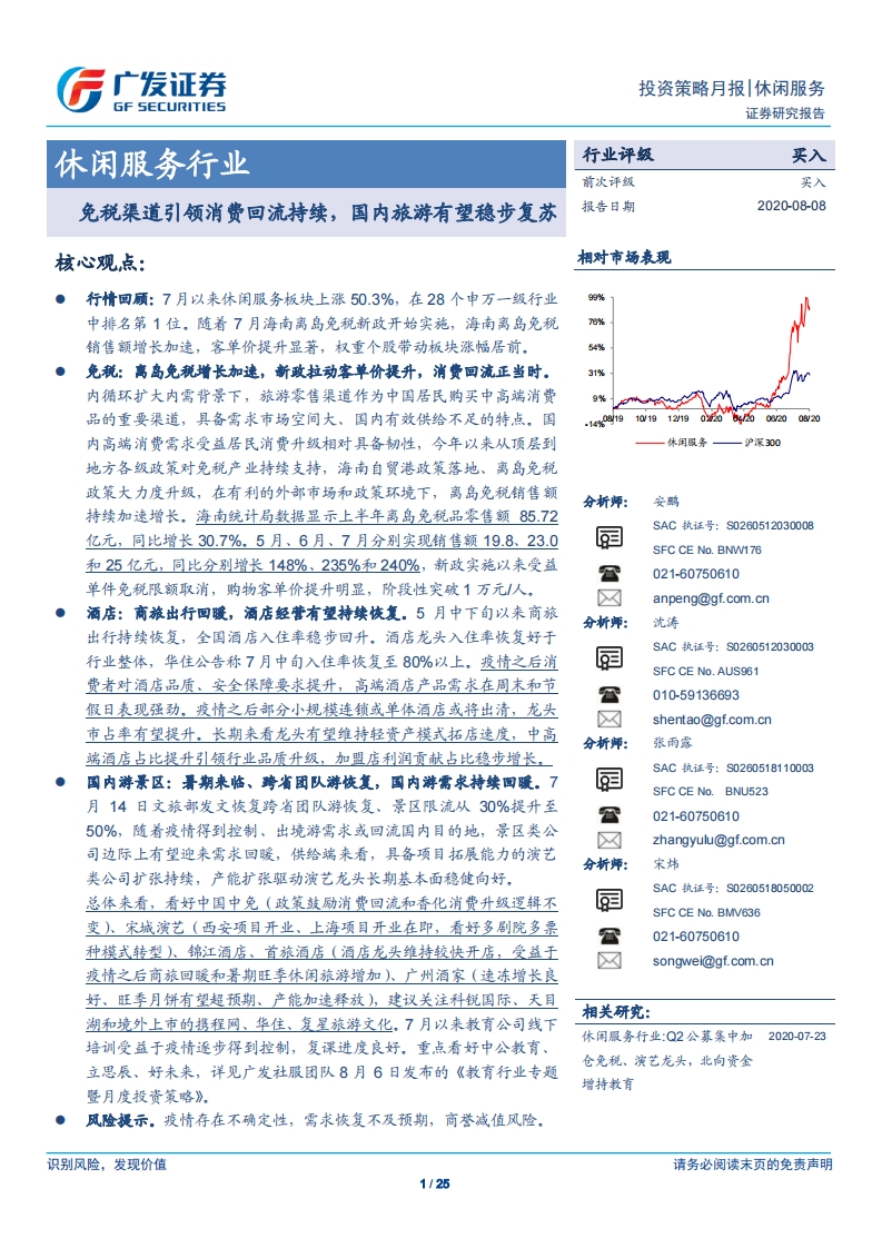 休閑服務行業(yè)投資策略月報:免稅渠道引領消費回流持續(xù),國內旅游有望穩(wěn)步復蘇