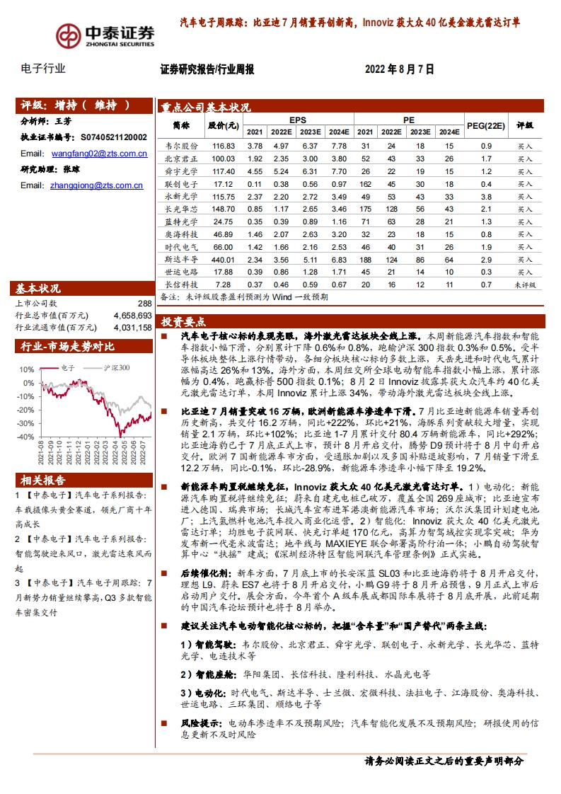 2022-08-08-中泰證券--汽車電子周跟蹤:比亞迪7月銷量再創(chuàng)新高,Innoviz獲大眾40億美金激光雷達(dá)訂單