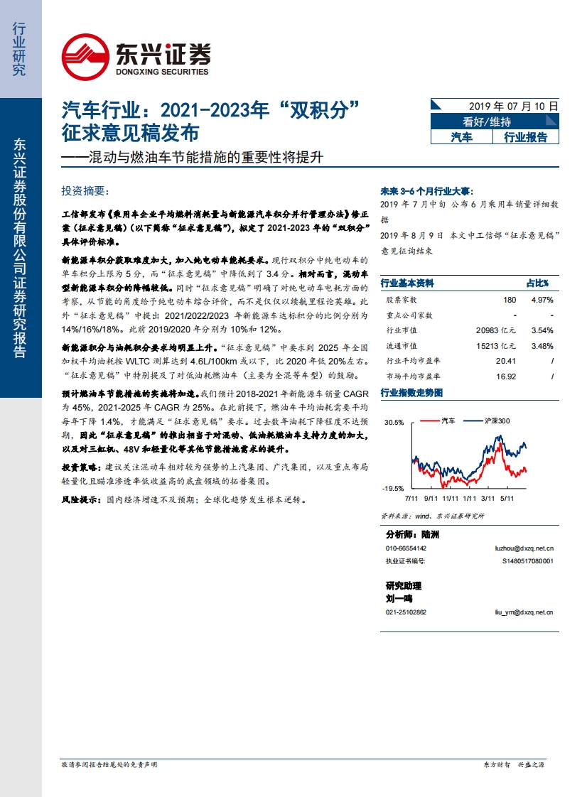 混動與燃油車節(jié)能措施的重要性將提升:汽車行業(yè):2021-2023年“雙積分”征求意見稿發(fā)布