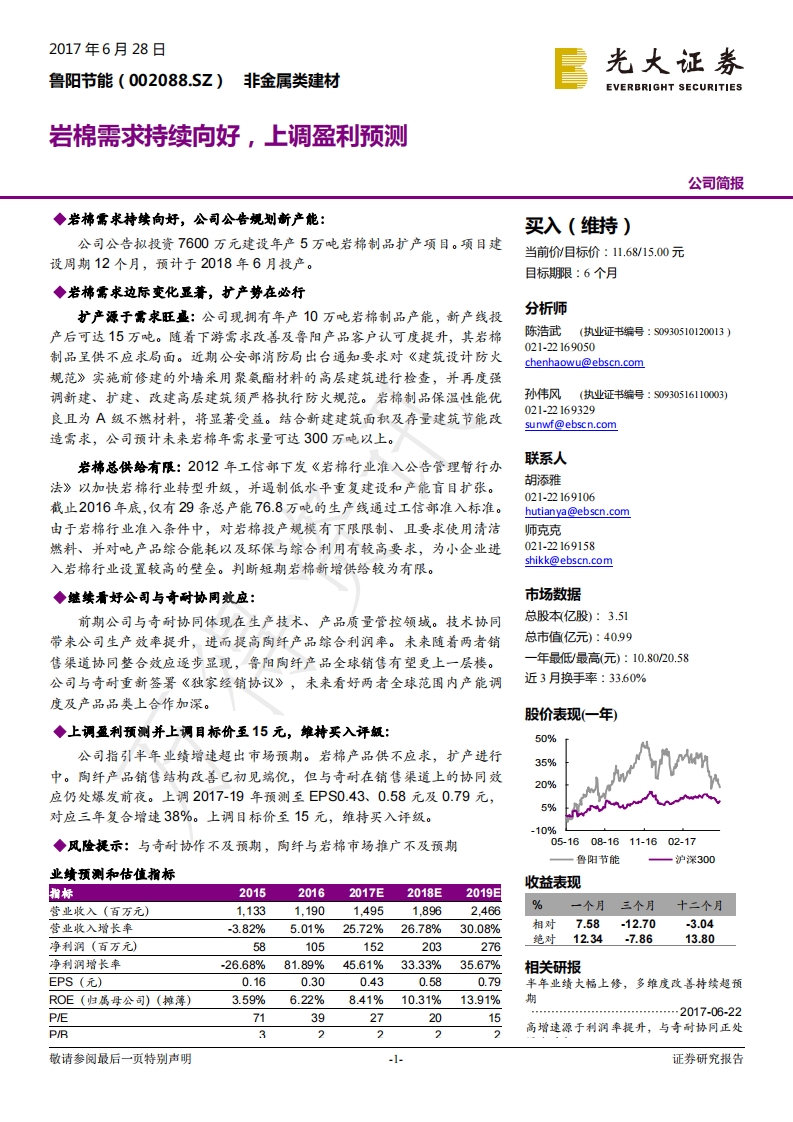 2017-06-29-光大證券-魯陽節(jié)能-巖棉需求持續(xù)向好,上調(diào)盈利預(yù)測
