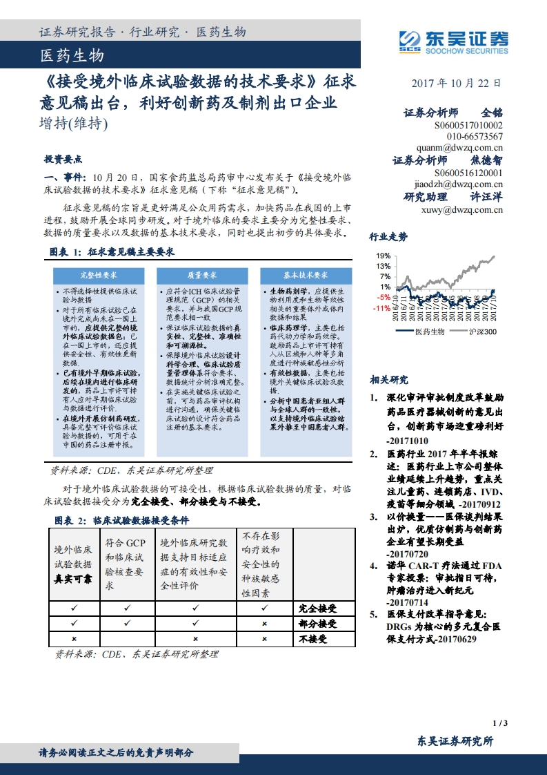 醫(yī)藥生物:《接受境外臨床試驗(yàn)數(shù)據(jù)的技術(shù)要求》征求意見稿出臺(tái),利好創(chuàng)新藥及制劑出口企業(yè)