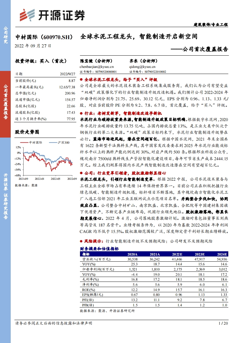 2022-09-27-開源證券-中材國際-公司首次覆蓋報告:全球水泥工程龍頭,智能制造開啟新空間